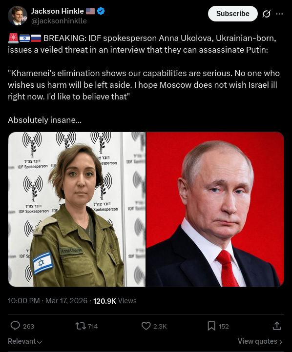 Вчера должностное лицо США письменно на гербовой бумаге обвинило Израиль в разжигании 2х войн. В которых погибли белые люди, в тч белая тяночка. У твитта с бумажкой сейчас 85млн просмотров и 772К лайков.