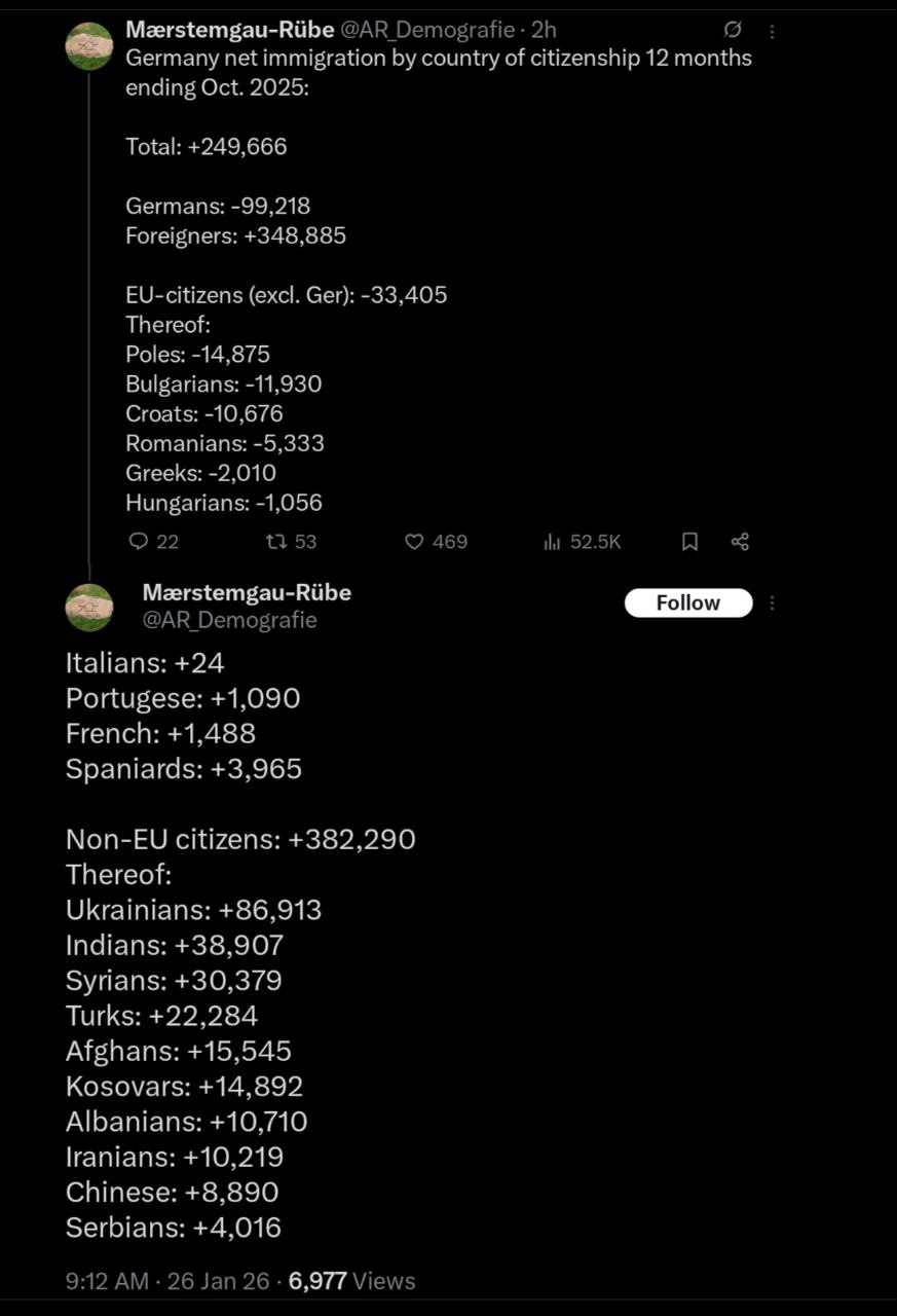 >>1276453 >они хотя б работают Каким хуем это плюс, довен? Ты же понимаешь, что они будут работать вместо кого-то? Я в ахуе с дегенерата, ну ты же сам ведь наверное где-то в айти работаешь, ты реально что ли не понимаешь какая это катастрофа? Это все, конец нахуй. Посмотри на Канаду и Америку. >>1276443 >не планируют Не планируют. Только хохлов. >шанс для альтернативы для гермнаии Которая депортирует хохлов и запретит въезд русачкам, ага. А на паджитов и арабов разведут руками.