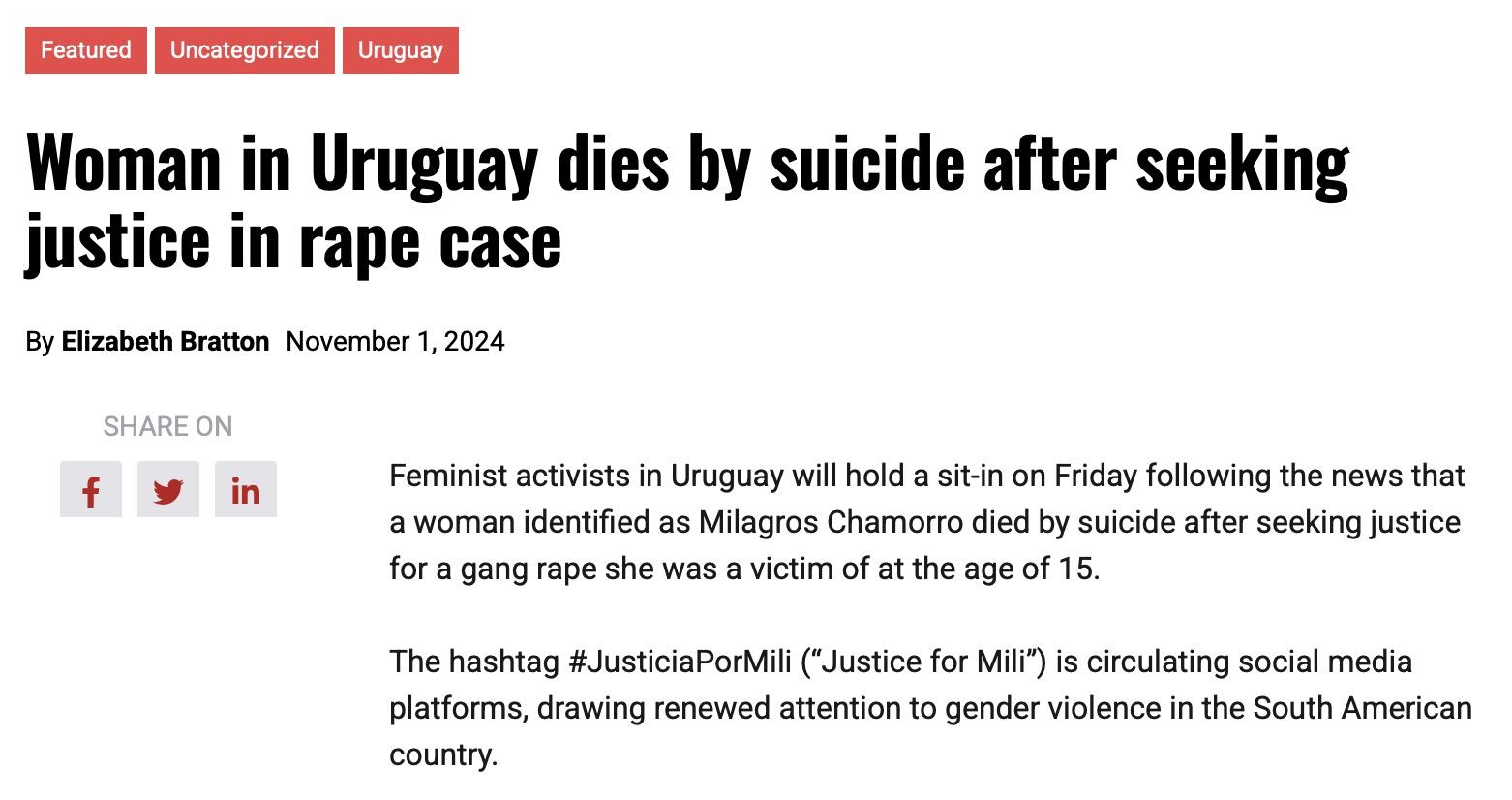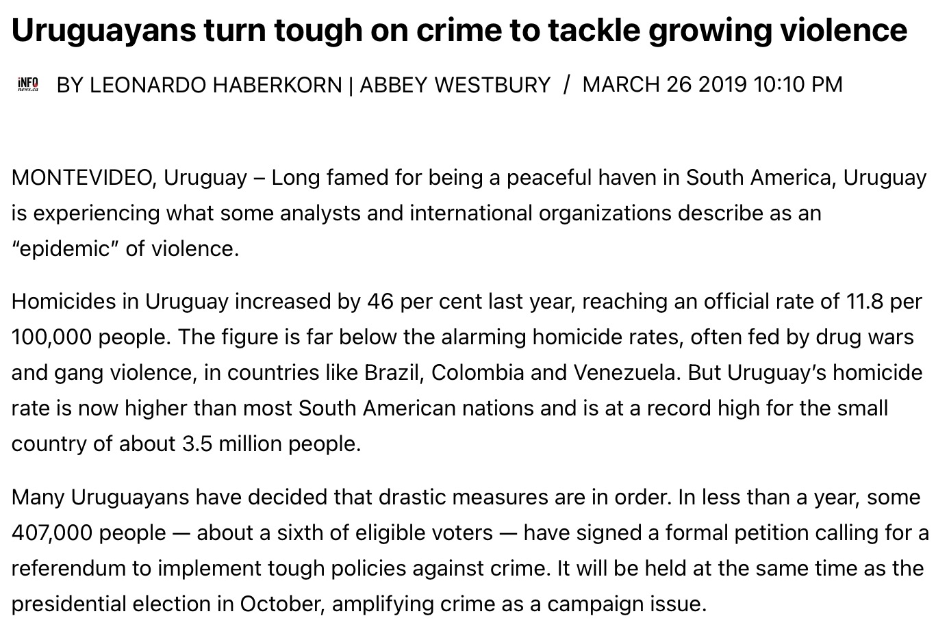 >>1282079 >нужно бежать в гражданство нормального мира Уругвая, да? В страну, где уровень убийств в 3 раза выше, чем в США и в 30 раз выше, чем в какой-нибудь Италии.