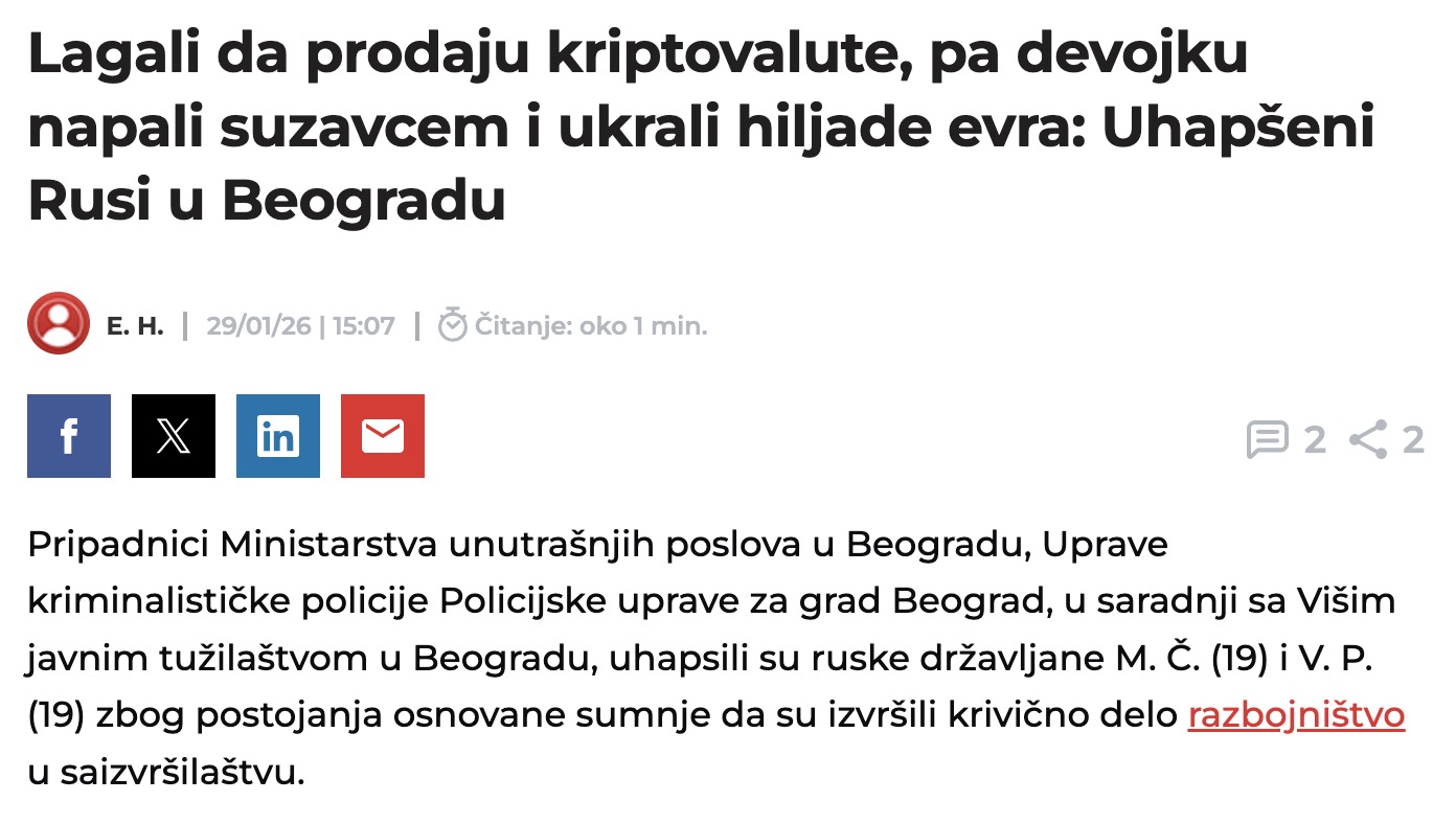 Криминал связанный с русами тут это разве что крипта и прочие связанные с ней схемки, которые в большинстве случаев почти никак не направлены на сербское население.