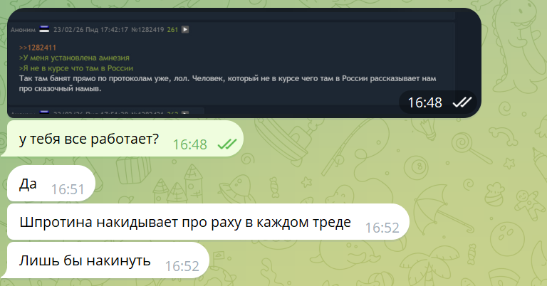 >>1282440 https://habr.com/ru/articles/1002336/ >Вчера, в очередной раз перебирая VPN-протоколы на своём VDS в надежде найти хоть что-то рабочее и не заблокированное силами РКН — просто чтобы посмотреть YouTube или пообщаться с ChatGPT по какой-нибудь ерунде Вон у пацанов всё не работает. И это как бы прошаренные пацаны, хабровчане.