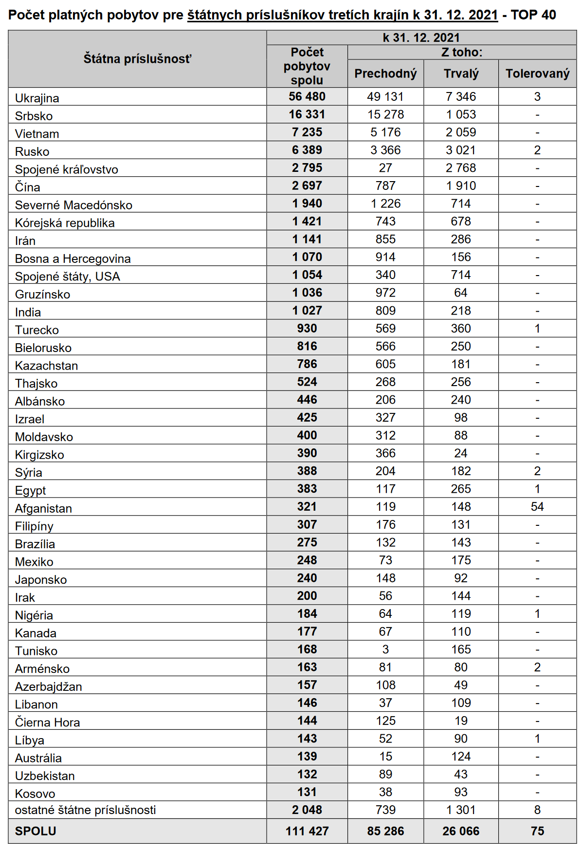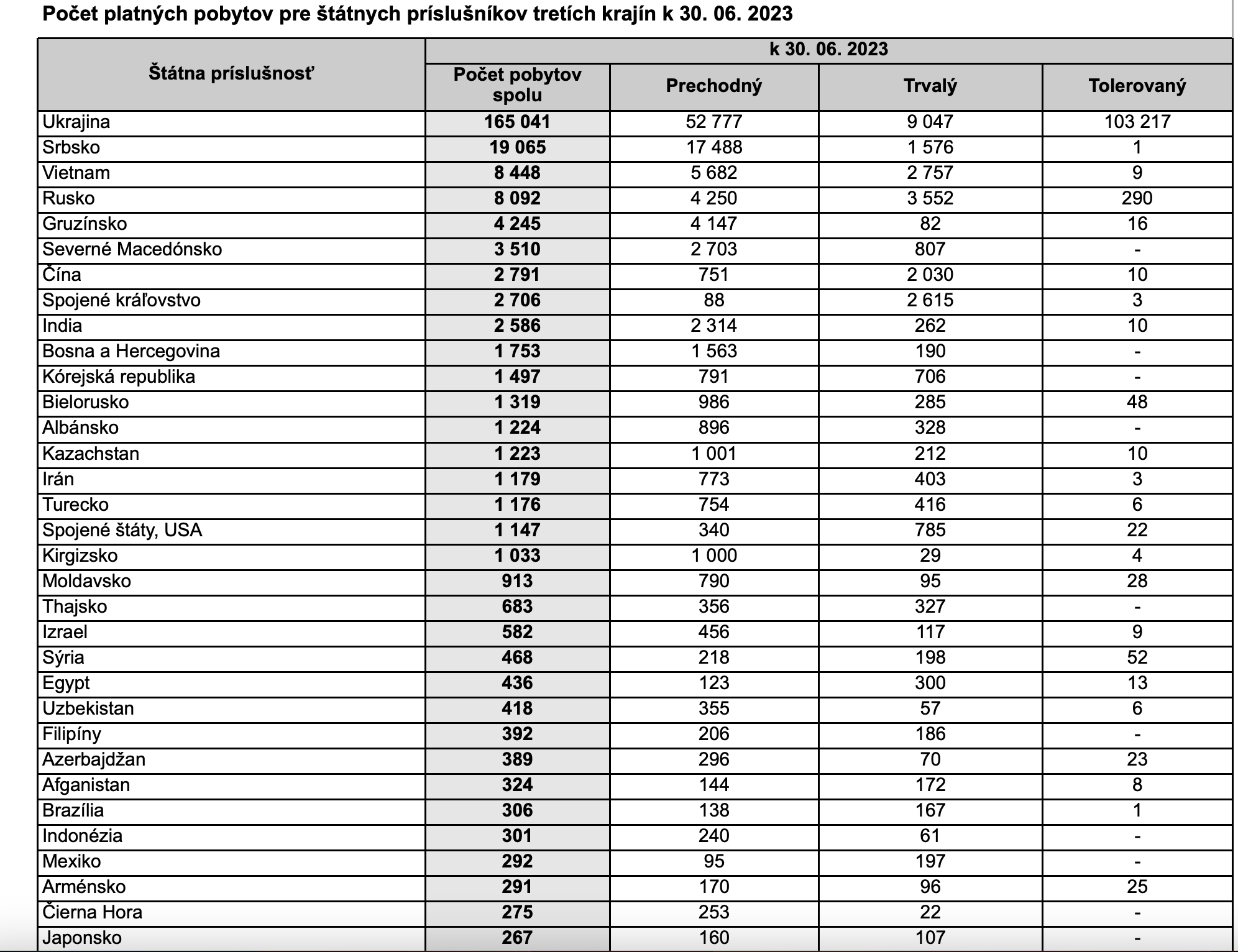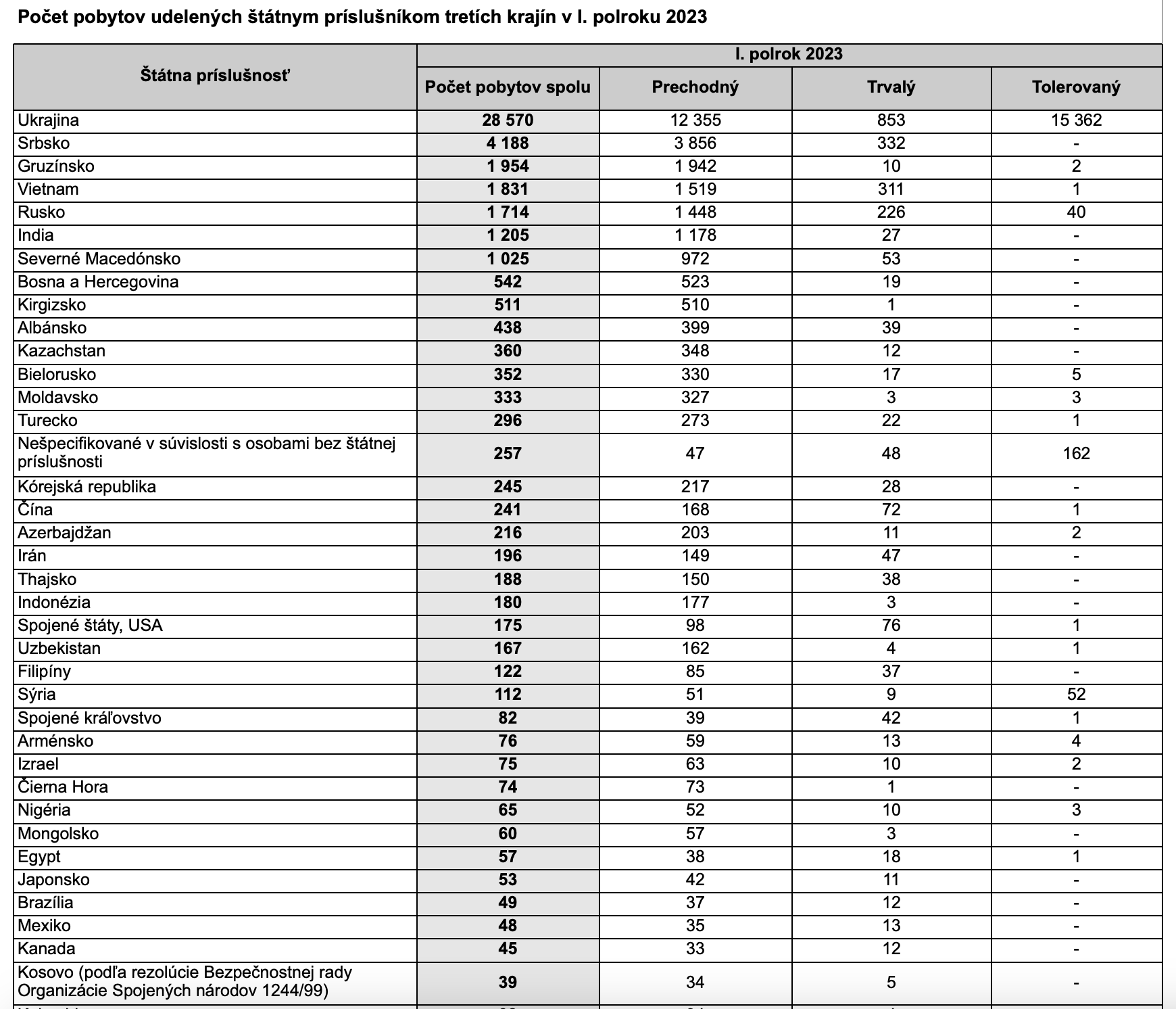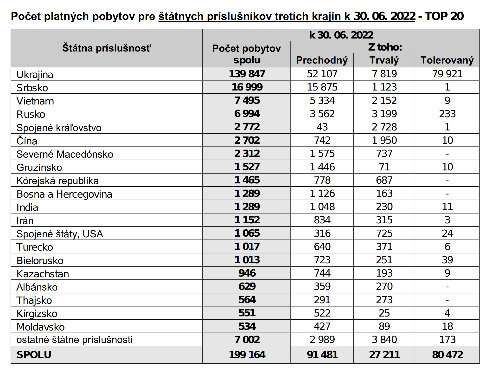 Ментовка опубликовала данные по иностранцам за первые 6 месяцев 2022 года: https://www.minv.sk/?rok-2022-1 Скрин статистики за предыдущий год можно посмотреть здесь >>851583 Украинцев прибавилось, но не так много как я думал. Тут писали >>864774 про 250 тысяч. На самом деле согласно новой статистике всего 95 тысяч.