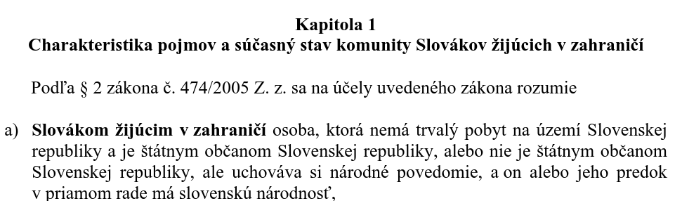 >>911782 Сейчас в законе написано что ты должен быть >predok v priamom rade Что скорее всего означает что только прямые наследники могут быть словаками. Хотя до 2005 года закон звучал по другому: >niekto z jej predkov v priamom rade do tretieho pokolenia bol slovenskej národnosti. В 2005 году переделали этот закон.