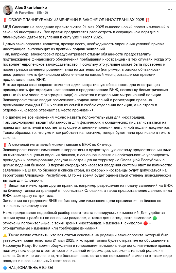 С 1 Апреля вступает в силу закон о выдаче национальной визы определенным работникам, в том числе высококвалифицированным специалистам. Тут фишка в том что дают национальную визу, вместо вида на жительство, но это чисто для того чтобы очень быстро завести челика в Словакию, потому что получение ВНЖ обычно долгий процесс.