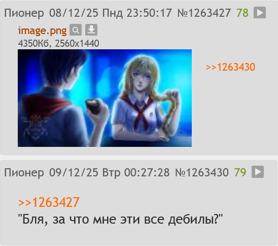 Двачане, всем хай, не буду ходить вокруг да около, но это пиздец. три года назад, в конце 2022 скачал Бесконечное лето, скажем был в отчаянии и решил поиграть во что-то любовное, уже не помню что да как, но я вышел на Плохую концовку с Алисой, тогда у меня башку снесло, столько проблем появилось из-за этого, пиздец, спустя пол года я пришел в себя, было лето и именно в это лето я первый раз в жизни был в лагере, вспоминая БС я провел ахуенно время в лагере, хоть было не так вайбово, как в игре, но с одной из тянок я познакомился, хотя об этом в след раз И вот в сентябре 2023 я вернулся опять в БС и тут блять я поднаровился ииии..... Плохая концовка с Леной ЭТО ПОЛНЫЙ ПИЗДЕЦ весь учебный год (ну скорее пол года, так как потом было ОГЭ и мне уже было не до БС, но все же я блять каждый день вставал с такими чуствами и мыслями, ну это просто полный пиздец. И вот прошло дохуя времени, мыслей стало очень многго, очень много проблем, потом еще поделюсь(наверное, если конечно ничего не произойдет) я знал, что если снова зайду в БС, то настанет момент, когда я в полном отчаянии, и вот я зашел, хотел твлечься и многое другое, бла бла бла.... я с кайфом всю ночь играл, играл сейчас, ну до этого времени. Хотел получить хорошую концовку со Славей и тут нахуй смерть нахуй это насколько нужно быть лохом и неудачником, чтобы получить Плохую концовку со Славей я вообще не знаю что делать столько мыслей, хотел чтобы хотябы где то что то получилось, но даже тут я обосрался, пихдец, че делать, как быть, снова переигрывать, мне 3-4 года понадобилось чтобы пройти на 3 плохих концовки, так что если думайте, что у вас что-то плохо вспомните меня, ведь это ну просто пиздец