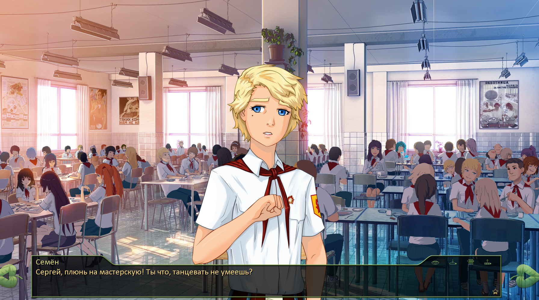 С командой девчонок-революционерок в пыльных буденовках он поднимает бунт, арестовывает Ашота и показательно порет его под статуей Генды, после чего отдает на поругание вожатой. Тем временем Наталья с освобожденными поварихами выкатывают прямо на площади столы и устраивают пир на весь мир, уничтожая за один вечер месячный запас продуктов. Главный герой довольно озирает дело своих рук, после чего увлекает Наталью в подсобку, срывает с неё синий халатик и любит её со всей силой накопившегося юношеского спермотоксикоза, кончая в майонезные баночки.