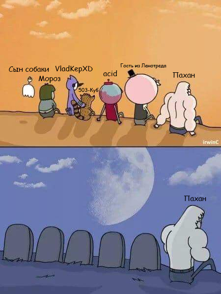 >>1090485 >из-за огромного количества неймфагов Спешите видеть цирк с клоунами и вниманиеблядками: неймфаг пеняет на других неймфагов за то что те слишком неймфаги. Тебе то самому вот перед самим собой не стыдно? >я сам от ника откажусь Ты конечно молодец и все такое, но ты чего ждешь? Что бы тебя похвалили? Что бы признали героем есача? Ты со своими друзяшками по чатику уже уничтожил этот храм, уже разогнал большую часть порядочных анонов, которые тут годами отписывались. У этого треда есть только 2 пути к спасению: моча начнет уже выполнять свою работу и перебанит весь ваш вниманиеблядствующий клан или же макака опять уронит есач, годика на пол, что бы воспоминания о нем остались только у самых преданных анонов. Алсо, когда вы только набежали и первые новые микутреды еще уходили в бамплимит за день - с этой же пикчей я высрал пост на тему что так все и будет.