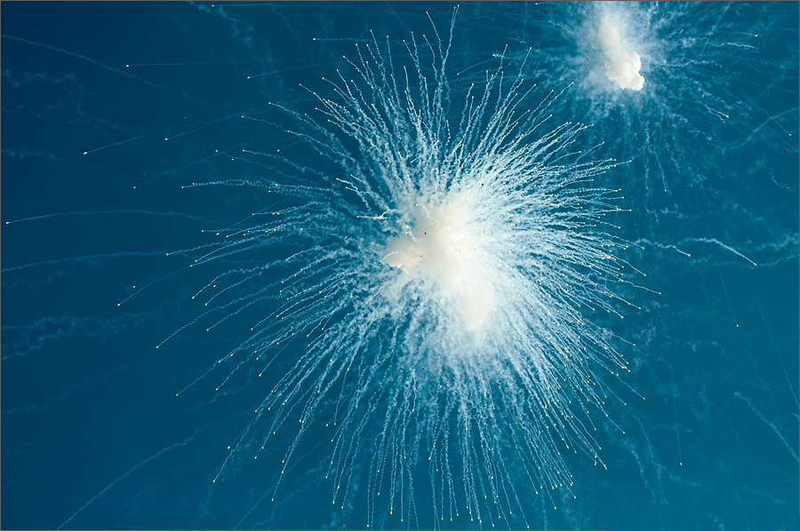 – Я тебе не кибернетик, по этому штука работает просто. Знаешь, что будет, если положить под кастрюлю петарду? У меня это принцип запуска. Одинаковые по длине фитили должны гарантировать то, что основная начинка взорвется в воздухе. Ну, наверное. Мои испытания так далеко не заходили.