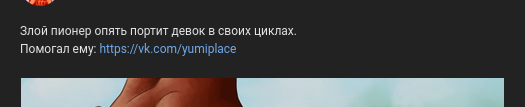 >>1122684 >шиза у рисоваки, который не хочет, чтобы его арт оказался в этой группе Всего-то просили ставить ссылку на художника, чтобы он не прозябал в безвестности, пока админ пионера трафик накручивает. >>1122692 Не сливают, а он сам на пиксив выкладывает готовое https://www.pixiv.net/users/202193/artworks На патреовне наброски.