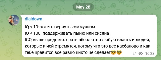 >>1130530 Это не IQ выше среднего, а когда вчерашняя школьница нажралась пынинской пропаганды "для умных", а на самом деле для циничных чсвшных хатаскрайных шкур.
