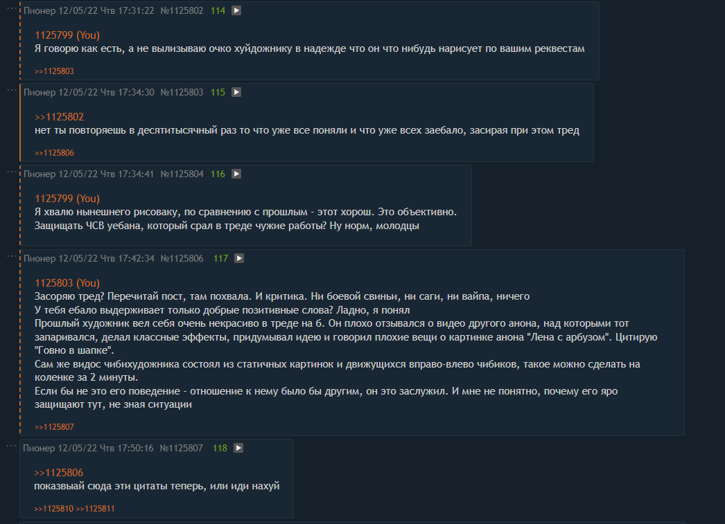 >>1128531 >мимо Вот конкретно в этом сраче как раз-таки я тут мимо, это раз. Я ни разу не отвечал на этот весь срач даже подсказывал кому-то там из этих двух авторов, но когда весь этот виток пошёл по второму кругу и очко треснуло, так меня сразу и записали в чибишизы. Аче, неплохо вышло, анон) >к рисованию никак не относишься в принципе Мимо кассы, ты видел мои полторы пикчи в жпбл конечно же, если ты тот анон, о ком я думаю, и здесь их тоже кто-то постил тоже нужны пруфы, без которых я хуй, или так обойдёмся? Да и вообще, как по мне, не в ту сторону атаковал. Я вышел из ридонли не для того, чтобы поддерживать срач, длящийся полтреда, а дать главному контентмейкеру рисовача, что как-то важности многовато, не более. Как тебе такая гипотеза?