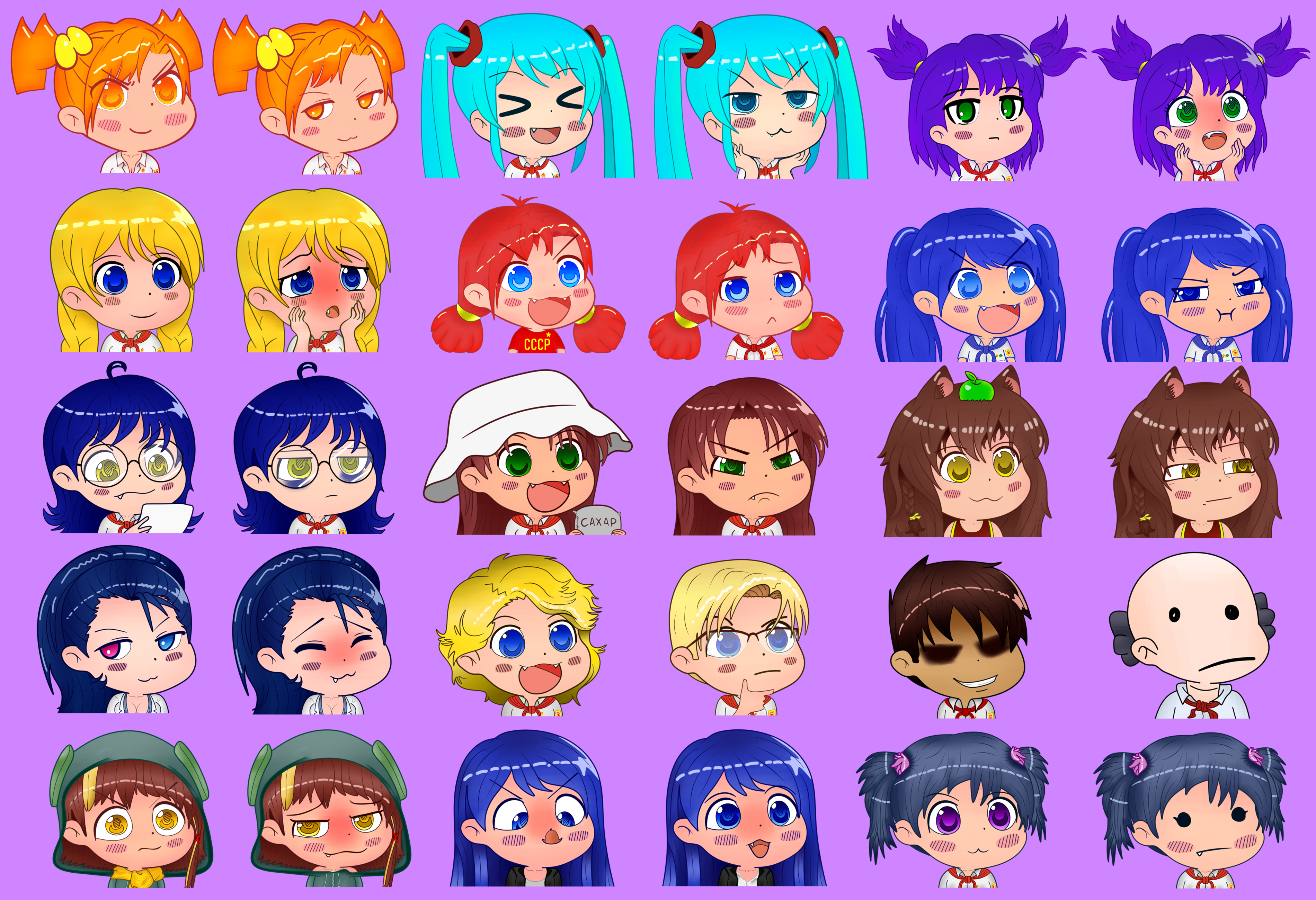 >>1126201 од уже есть чибиковская вот такая, но я всё равно переделал бы под общий стиль завтра будет а ещё думаю по два варианта эмоций всем чибикам сделать а не по одному, чтоб злая леночка была, сердитая славя че думаете?