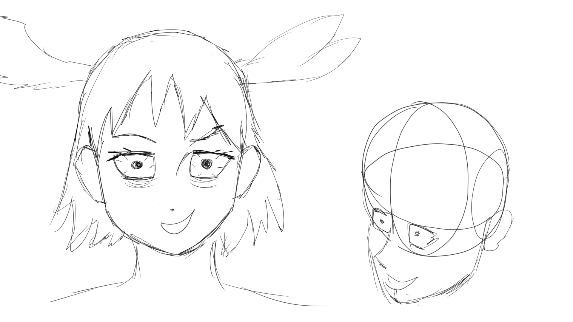 >>1132710 Да не загоняйся, братан. Просто ты пытаешься с ходу заделать неподъёмные задачи. По началу надо как можно более простые позы рисовать чисто упор на запоминание пропорций делать, только когда знаешь пропорции есть смысол их пытаться хитровыебанно искажать в пространстве. >>1132708 Тут не совсем человеческая анатомия и да, глаз сбоку там совсем неправильный. НО очень верно отпускать от круга линию вниз ведь она точно упадёт в основание подбородка. Это будет ориентиром. Женские надбровные дуги почти не заметны, можно их почти не рисовать.
