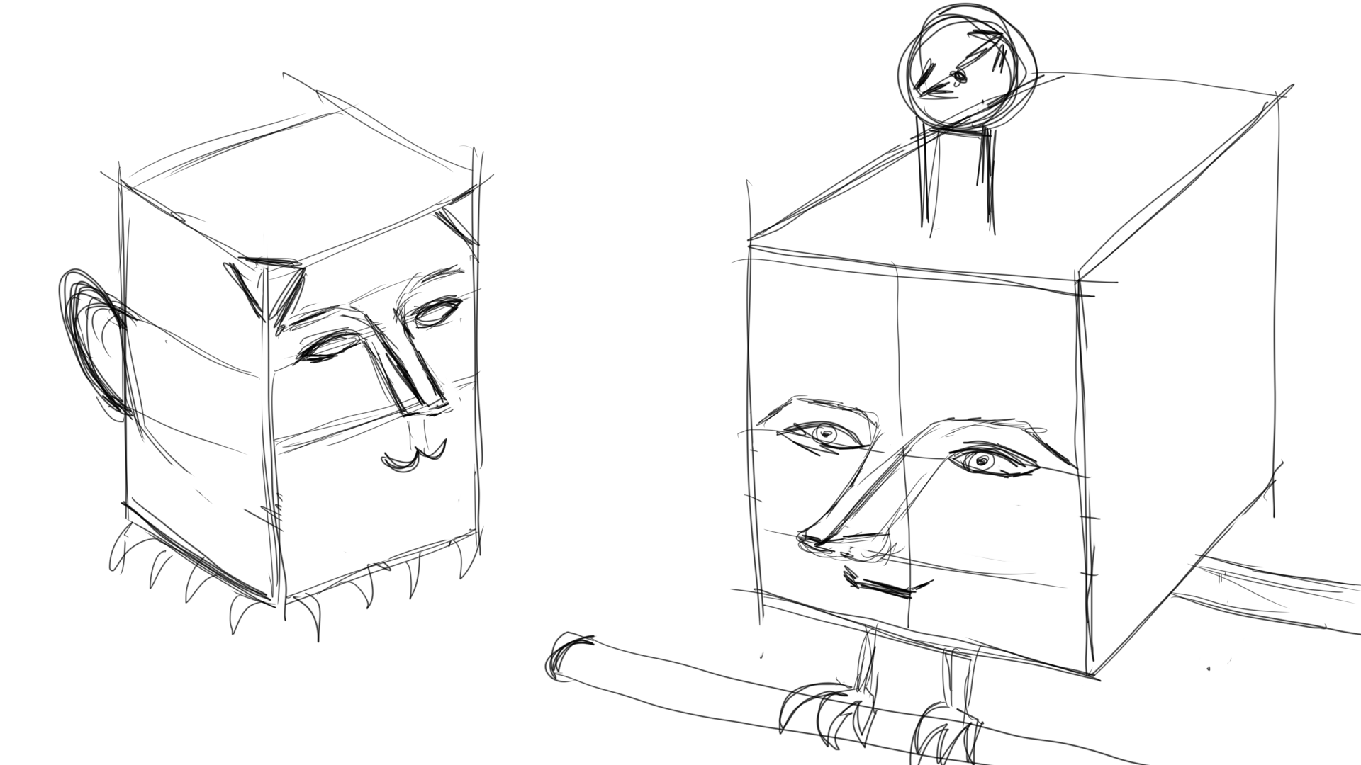 Толи голову в виде куба рисовать, то ли в виде шара с элипсами. Всё равно получается что то среднее и всё равно конструкция летит в пизду. Но в академ рисунок ни ногой, туда лучше вообще не лезть.
