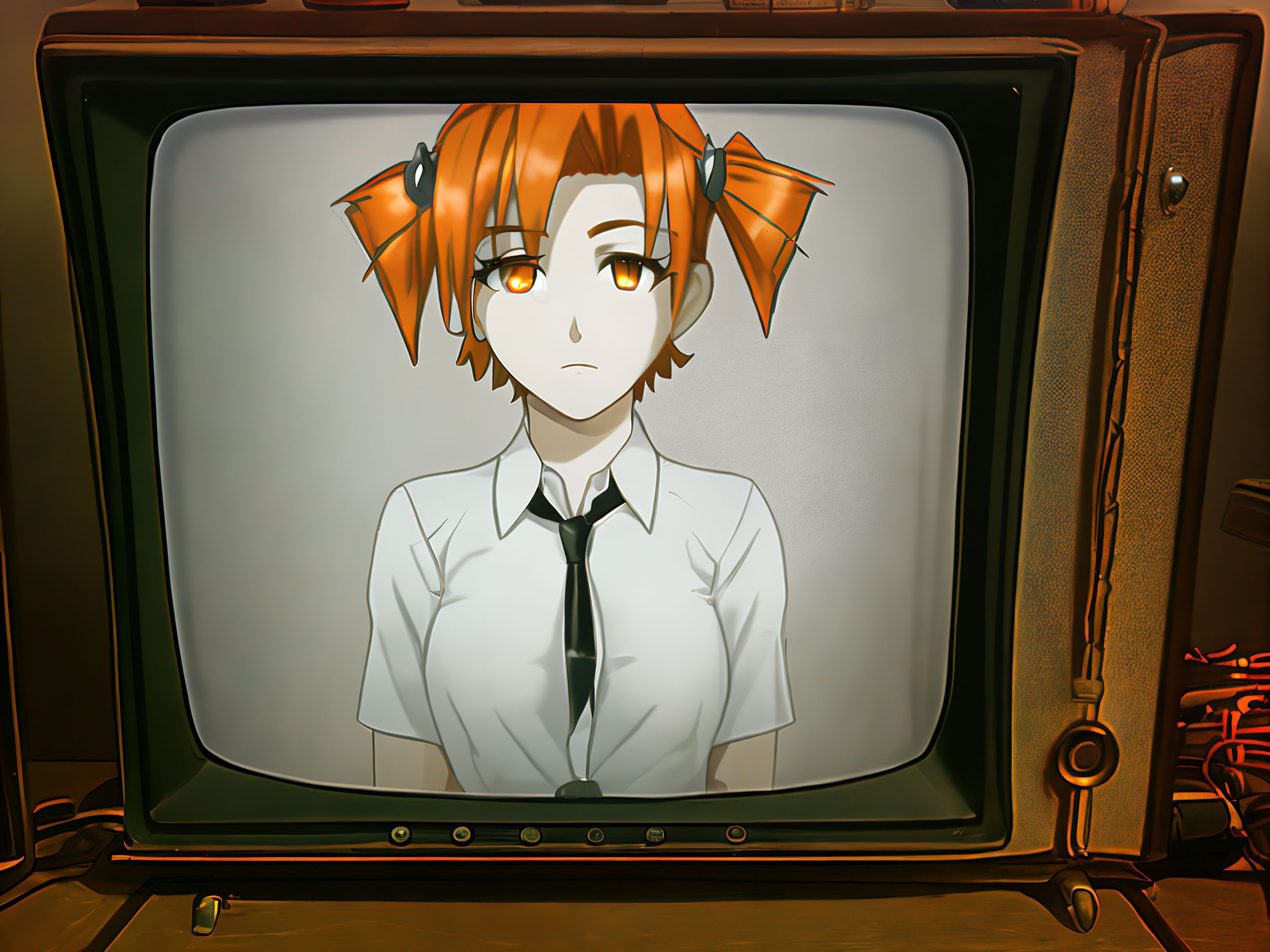 Если прописать в промте только orange hair, orange twintails, настройки как на 2 пике - получится минимум похожеб но не то