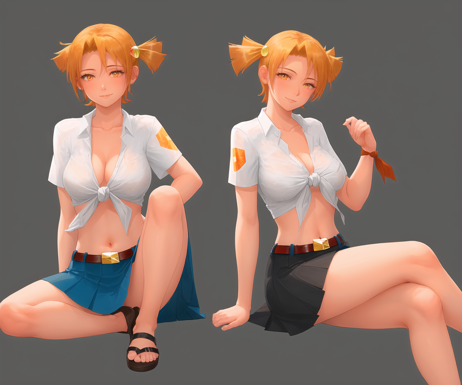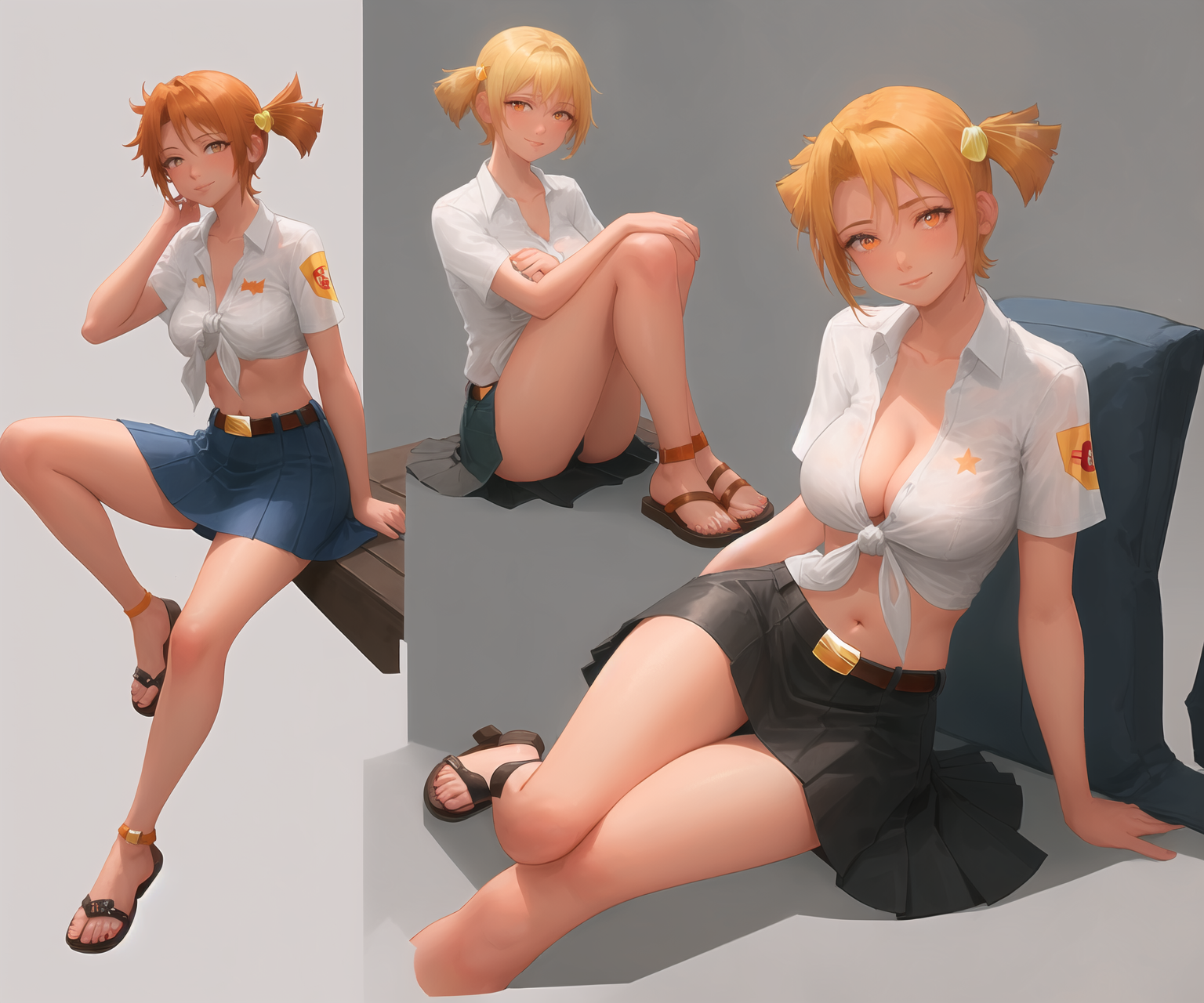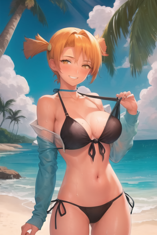 Пример промта для картинок на пике 1: 1girl, solo, (detailed :1.1), (poster:1.3), album cover, heavy metal, ((monochrome)), anatomically correct, (masterpiece:1.2), highest quality(1.3), upper_body portrait, dutch angle, dynamic angle, (standing:1.3), nsfw, playful eyes, smug, short twintails, ((orange hair)), hair ornament, datailed hair, (pale skin:1.2), medium natural breasts, (black knee_boots:1.0), (white tied shirt:1.1), (blue pleated skirt:1.0), navel, cleavage, belt, white gradient photo studio background, jpeg artifacts traditional_media Negative prompt: string_bikini, loli, ugly, fat, lowres, bad proportions, bad anatomy, bad hands, text, error, missing fingers, extra digit, fewer digits, cropped, worst quality, low quality, normal quality, jpeg artifacts, signature, watermark, userna blurryme, Steps: 28, Sampler: Euler a, CFG scale: 12, Seed: 258409650, Size: 720x1280, Model hash: 6569e224, Model: Anything-V3.0, Hypernet: AkiceDeffusionV01, Hypernet strength: 0.7, Denoising strength: 0.65, Eta: 0.69, Clip skip: 2, ENSD: 31337, First pass size: 0x0
