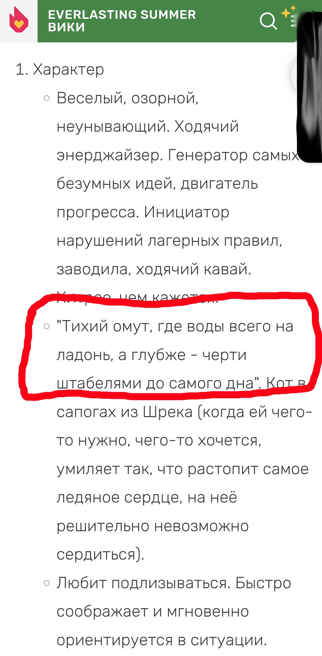 >>1151183 А ты читал "Бесконечные каникулы"?Что-то один рут прочитал, как же заебало. Весь сюжет в лагере - переписывание Риты своими словами, отличия в концовках с явным закосом под пивописа. В тексте много опечаток и синтаксических ошибок. Вроде автор на тот момент был старше 20, но с трудом верится, что это взрослый человек писал. Да и вообще рерайт Риты во многих школомодах, мододелы не знают, как по-другому начать историю. В "Рыжем счастье" оригинальных ивентоа очень мало, там тоже в подражательном стиле. Даже Абрикос на заре писательства ничего лучше придумать не мог, с каждым обновлением он пытался исправить первые два дня так, чтобы поменьше напоминало ритописанину.