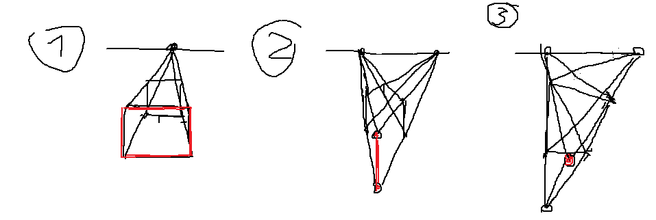 >>1148314 О о о о, я в этом шарю!.. сейчас открою тетрадь где записал эту ботву....... Да да, вот же оно... Смари: 1) Одноточечная перспектива - ты рисуешь квадрат и сводишь его грани к одной единственной точке на горизонте. 2) Двухточечная - ты рисуешь одну грань и проводишь остальные части куба через 2 точки. 3) Трёхточечная - ты рисуешь всего лишь точку и соединяешь её с тремя точками схода две из которых на линии горизонта