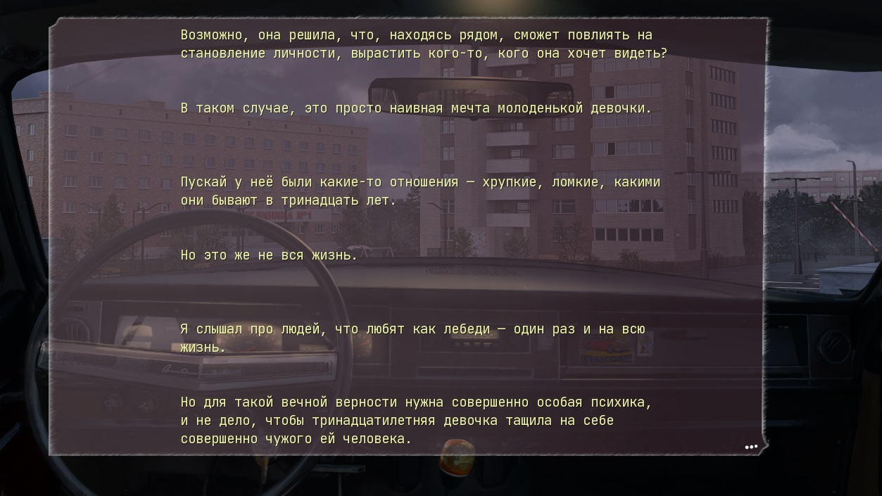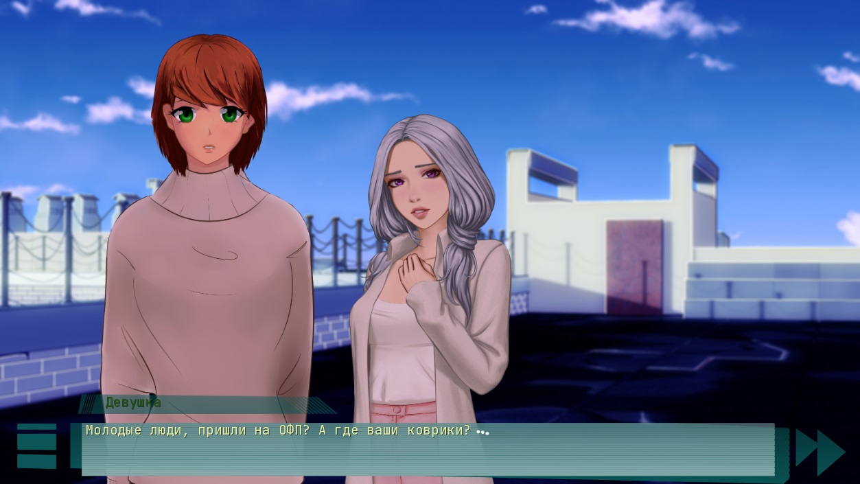 dreamgirl "Тебе не получится уйти от проблемы. Придётся сделать выбор." me "А почему мне?" dreamgirl "Да потому что Ольга любит тебя, очевидно же." "Неохотно ответил мальчик-Семён, мечтающий о том, чтобы сделать счастливой одну очень грустную девушку." dreamgirl "А не меня. Потому-то решаешь ты."