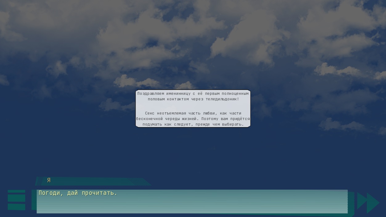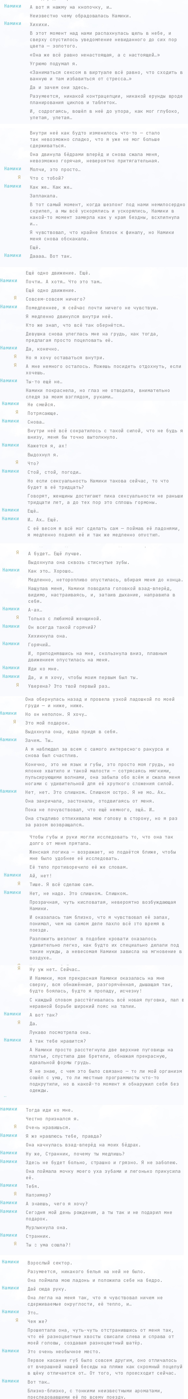 Первая сцена секса в юскае. ГГ подарил Намике хуй на день рождения. Как вам самостоятельная эротика от пивописа?(читать снизу вверх - так работает бэклог у пивного, уж не знаю, чем обосновано такое решение)