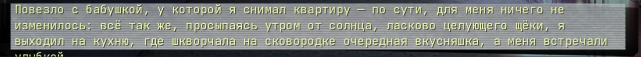 Описывать сюжет рутов не буду. Скажу так. Это не 7дл. Лор основан на чем-то похожем, персонажи +- те же (в руте Ланы, который происходит в Нулевой, недельки через 2 после конца смены в совенке, мы встречаем Катерину и гвардию, а все второстепенные персонажи - либо одноклассники известных нам девочек, либо сёстры Феоктистовы) , концепт тот же - 7 дней в чужой тушке. Но уклон повествования другой. А В руте Намики (как я понял, кванк Мику из мира техносингулярности 2080 года) вообще все крутится вокруг киберпанка и технофентези. Читается интересно, пусть и перенасыщено лишними деталями. Видимо, пивописа реально душили декорации бесконечного лета, ибо по сравнению с поделиями про совёнок - это качественный продукт. Но пивий не был бы пивием, если бы в своём продукте не проебывал концепции за концепциями. Механика стертых и ПСРов кардинально противоречит существованию Ульяны и самого Семёна-мажора. Видимо, написана она была под Септима, потому что функционирует так же. Года путаются. В прологе на дворе 2019, в начале руты Ланы - мы прибыли из 20ых, а в конце и во всем Намикируте - 22ого. Повествование иногда скачет как ненормальное. Не так, конечно, как в Алисе УГ, но все равно сбивает с толку. Пивий остался таким же инфантилом, по этому развитие взаимоотношений между персонажами иногда работает по принципу «они назначили друг друга хуями в первую минуту знакомства и больше никогда не смогут друг без друга». Ну и конечно никакой жизни девочки и прочие персонажи после ухода гг себе представить больше не могут. Очень всратый слог местами. В одном предложении он называет человека «челиком», а измену «адюльтером». Все эти «або, иже, сиречь» и прочие алаверды очень режут глаз. Иногда гг мыслит как Семен. Иногда все персонажи говорят и мыслят как Семён. Очень руинит атмосферу.