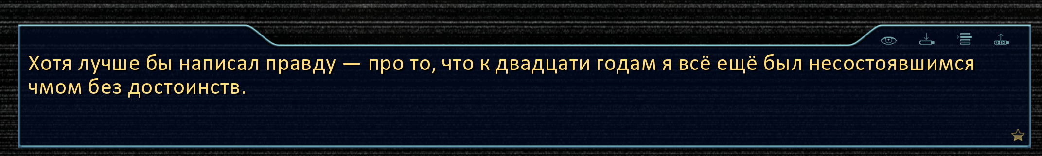 >>1157195 "Скинув сандалии и забравшись с ногами на кресло, я открыл оглавление." $ set_mode_nvl() play music music_list["trapped_in_dreams"] fadein 3 $ alt_pause(3) play sound sfx_7dl["page_turning"] "Глава I. Нападение фашистской Германии на СССР. Крах блицкрига." "§1. Накануне войны." "§2. Начало войны." "§3. Страна мобилизуется." "§4. Битва за Москву." "§5. Трагические дни 1942 г." $ set_mode_adv() th "Пока ничего необычного. Всё та же знакомая история." "Я пробежался глазами до конца оглавления." $ set_mode_nvl() play sound sfx_7dl["page_turning"] "§22. Внешняя политика СССР." "§23. Тенденции и противоречия социально-экономического развития." "§24. Противоречия в политической и духовной жизни общества." "На пути обновления." $ set_mode_adv() th "Так я до утра ничего не найду. Нужно изменить подход." "Я долистал до предметного указателя." "Генда, Ульян Игоревич 111." th "Имечко, конечно…" th "Вот будет забавно, если идейно-партийные родичи Ульяны назвали дочь в честь этого персонажа!" "Открыв нужную страницу, я пробежался глазами по тексту." "В конце главы значилась небольшая справочная сноска, и с потускневшей чёрно-белой фотографии на меня строго взирал Генда." $ set_mode_nvl() "Первич. Икари, Гендо (1899 – 1946 гг.) (вторич. Генда, Ульян Игоревич (1946 г. — н.в.))" "Японский учёный, руководивший японо-советской группой, исследовавшей экспериментальную технологию восстановления разрушений, оставленных в ходе войны." "В ходе неудачного эксперимента Икари был стёрт, и исследование было остановлено по соглашению властей СССР и Японии." $ set_mode_adv() "Я непонимающе уставился на страницу. Перечитал ещё раз – чтобы убедиться, что глаза меня не обманывают." th "Что значат эти “первич.” и “вторич.”? И как это понимать – был стёрт?" "Было понятно лишь то, что ничего не было понятно. Я перелистнул страницу назад и принялся читать начало главы." $ set_mode_nvl() "§15. Восстановление разрушенного хозяйства" "Состояние народного хозяйства. Перевод его на мирные рельсы." "Ущерб, нанесённый нашей стране агрессорами, был огромен. За годы войны Советский Союз потерял треть своего национального богатства." "Были разрушены многие крупнейшие предприятия страны." "К их восстановлению Советское государство приступило ещё в годы войны, по мере того как освобождались занятые врагом территории." "Но как первоочередная задача восстановление встало только после победы."