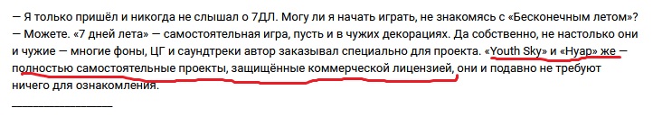 В целом, ситуация необычная и занятная. Помимо того, что мод к игре кто-то решил перевести, этот мод попросту гигантский. Это почти суисайд. А они уже перевели всё, кроме обоих рутов Лены и Слави, а так же Мику-7дл.