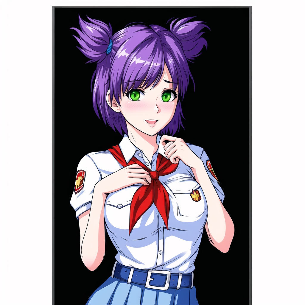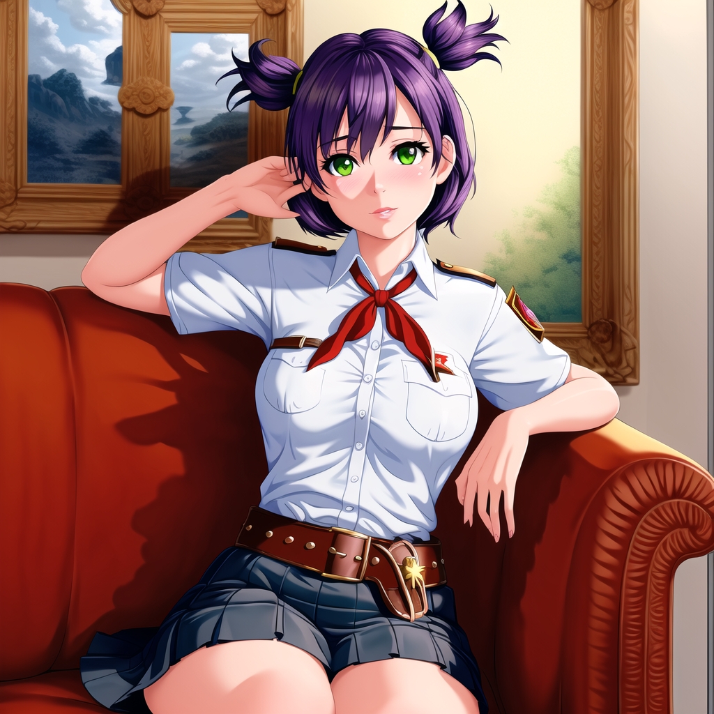 Нейронка при обучении решила что Леночка из мусарни и теперь то погоны ей пририсует, то кобуру. И это я еще правлю цвета рубашки и юбки, рубашку он пытается рисовать в мусорском голубом, а юбку в зеленом.