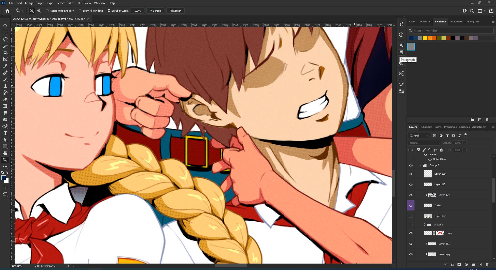 >>1160419 С собственным стилем у меня проблемы так, как я редко крашу и результат зависит от того, какой гайд я последним посмотрел. В данном случае я попробовал что-то из курса, указанного в шапке, с покрасом через хард лайт, но чем больше смотрю на результат, тем меньше он мне нравиться. И в персонажа не особо попал, и глаза разного размера, и цвета перенасыщенные, и кожа слишком глянцевая. Просто лайн без цвета мне нравится больше, чем финальный результат. В следующий раз буду пробовать делать проще.