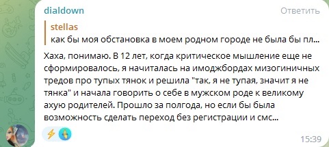 >>1166377 >родилась во время девяток >в 12 уже сидела на бордах Какая же там каша в голове, пиздец просто. Я бы таких людей по соседней улице бы обходил от греха подальше.