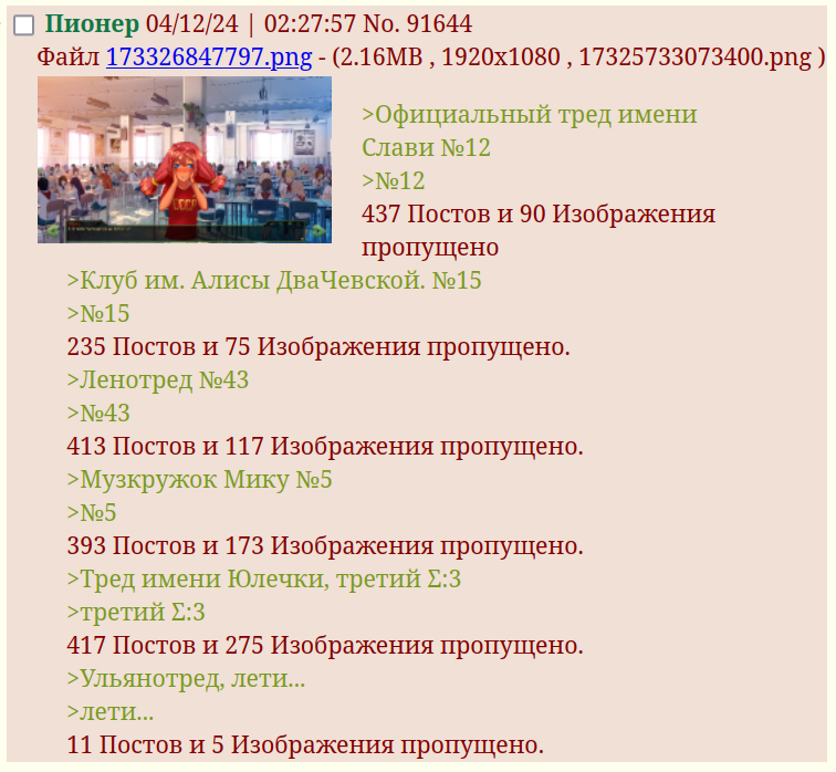 "Пионеры! Уже приближается новый год! И по новогодным традициям! Всем Ульянофагам в ночь 31 декабря придёт Ульянка! Если вы были хорошим мальчиком, вы сможете попросить её сделать всё что угодно! Даже попросить её трусики или попросить её посидеть на вашем лице! А вот плохих мальчиков она будет доить часами на пролёт до того момента когда ваши члены будут болеть. С НАСТУПАЮЩИМ НОВЫМ ГОДОМ!"