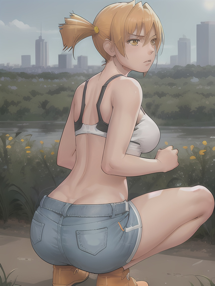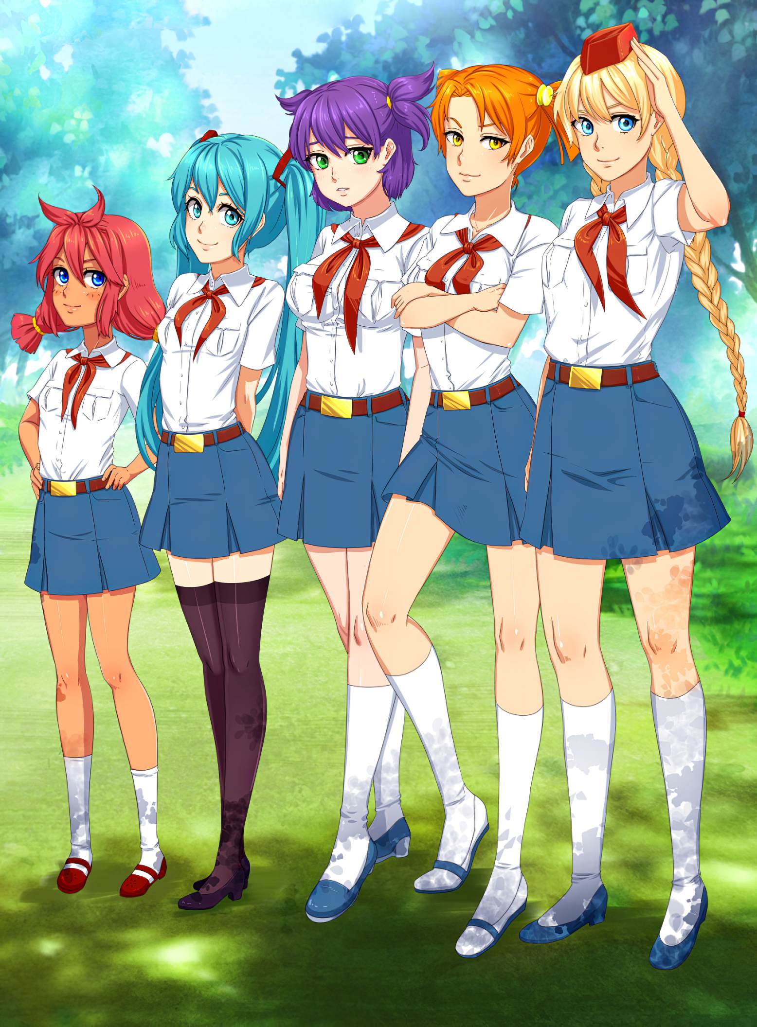 Откуда пошли стереотипы, что Алиса такая вся из себя спортивная? Ничего против не имею, но по канону она на спортсменку никак не тянет. Бег - это к Славе, футбол - к Ульяне, бадминтон - к Лене. Плоский живот у всех. Алиса в основном по лагерю шаталась и на гитарке бренчала.