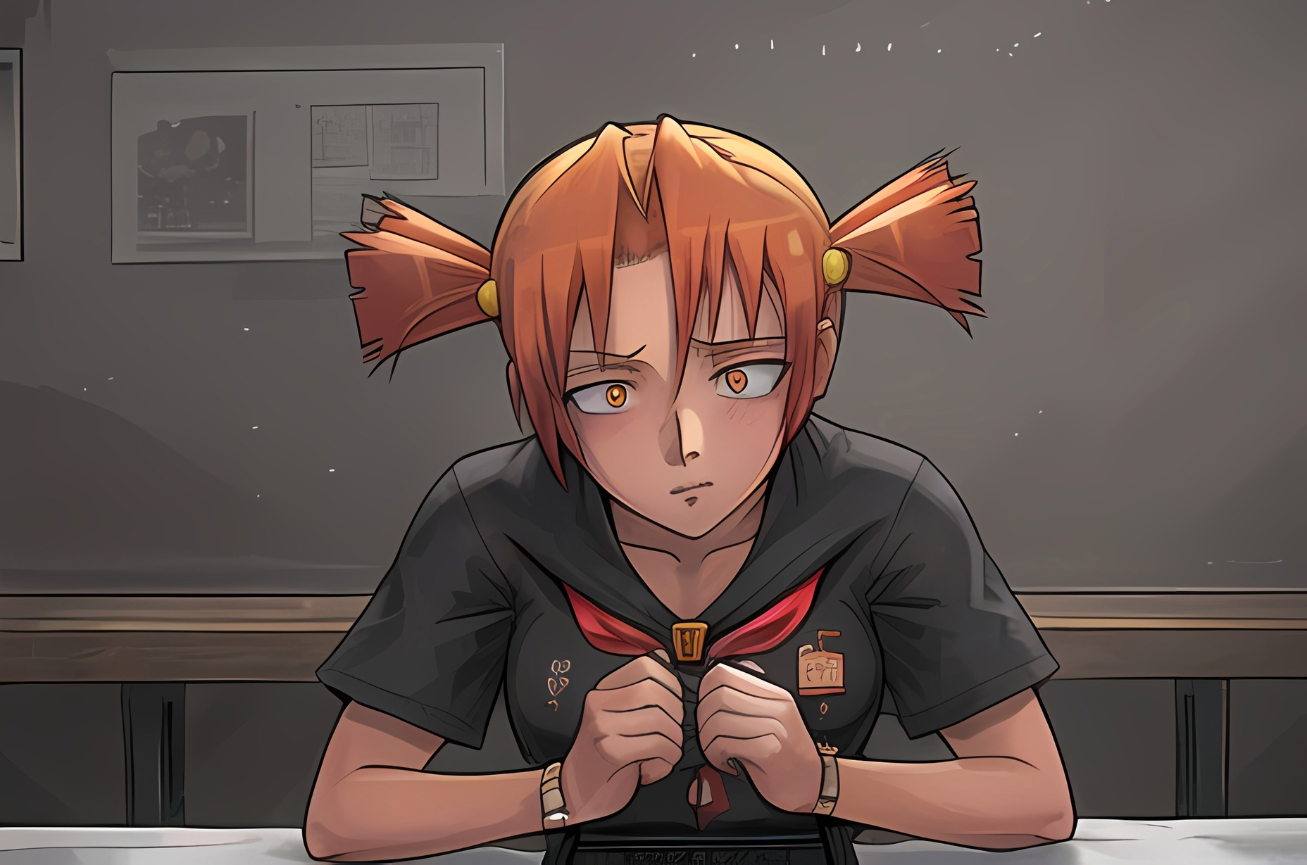 Тоже самое с глазами. И да, у тебя Алиса перекачена, как культуристка, а ручонки словно у Ульяны позаимствовала. Если уж позиционируешь её такой из себя спортсменкой, то подкачай руки.
