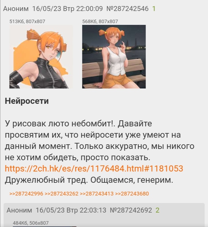 >>1181222 Трипл, ну ладно, отвечу. К нейросетям отношусь положительно. Иногда срисовываю с них. Они дают мне вдохновение и силы работать. А вообще нейросети это будущее человека, глупо отрицать их существование. Это как не чистить зубы щёткой, потому что её придумали для упрощения задач.
