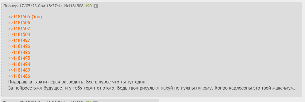 >>пук >Ясно, а что сказать-то хотел, болезненный? Ну тут уже просто очевидно. Если вас оставшихся рисующих 5 человек всё устраивает, то не буду мешать.