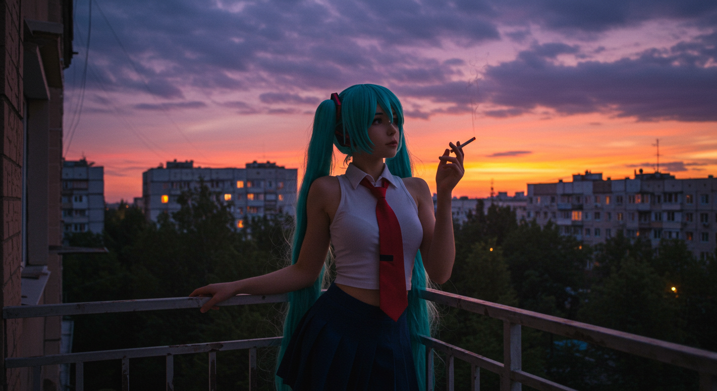 Я заныл как последняя сука до ручья слез из правого глаза, такая концовка нахуй ( Чертов процессор в 7ДЛ ) , как на 6 день Микуська уезжает в Японию, Семён как дурак многое не успел сказать, как итог, он понимает что ему ничего не интересно в жизни, полная апатия, он понял что возможно больше никогда не увидит её, но ошибки не исправить, она уже там, в Японии, строит дальше свою карьеру, и когда Семён попадает в свой мир он тщетно пытается воссоздать её голос, включает разные песни, а затем и Мику таинственным образом находит его по скайпу, созваниваются, общаются, но вот ведь не задача.. Семён прекрасно понимает что больше никогда её не увидит, игра окончена, вставьте душу, ваша неделя в лагере превратилась одновременно в приятные воспоминания и повод вскрыть себе вены.. Я так хочу закурить от этого пиздеца но не могу, сигареты закончились, а магаз закрыт... Почему я такой сентиментальный в свои 21...