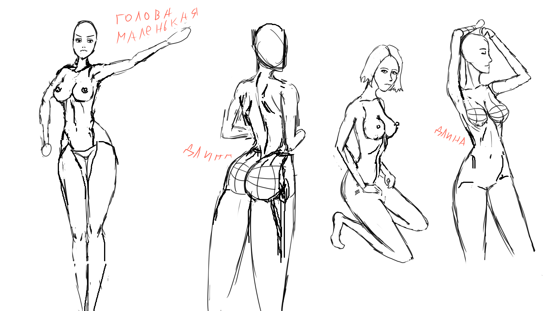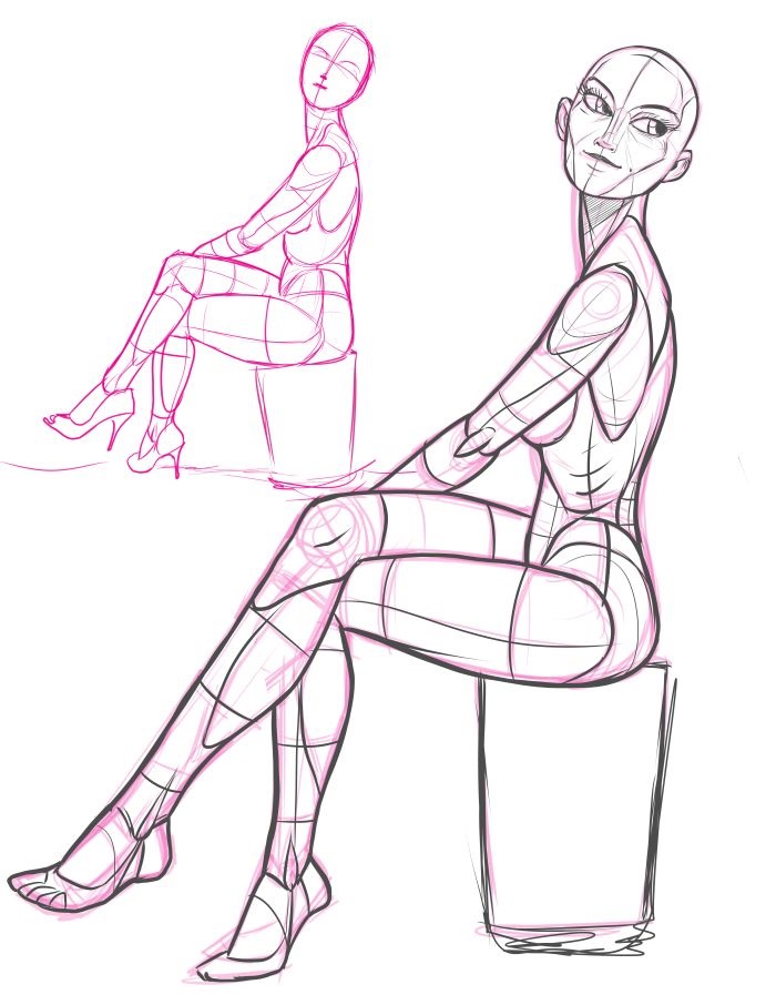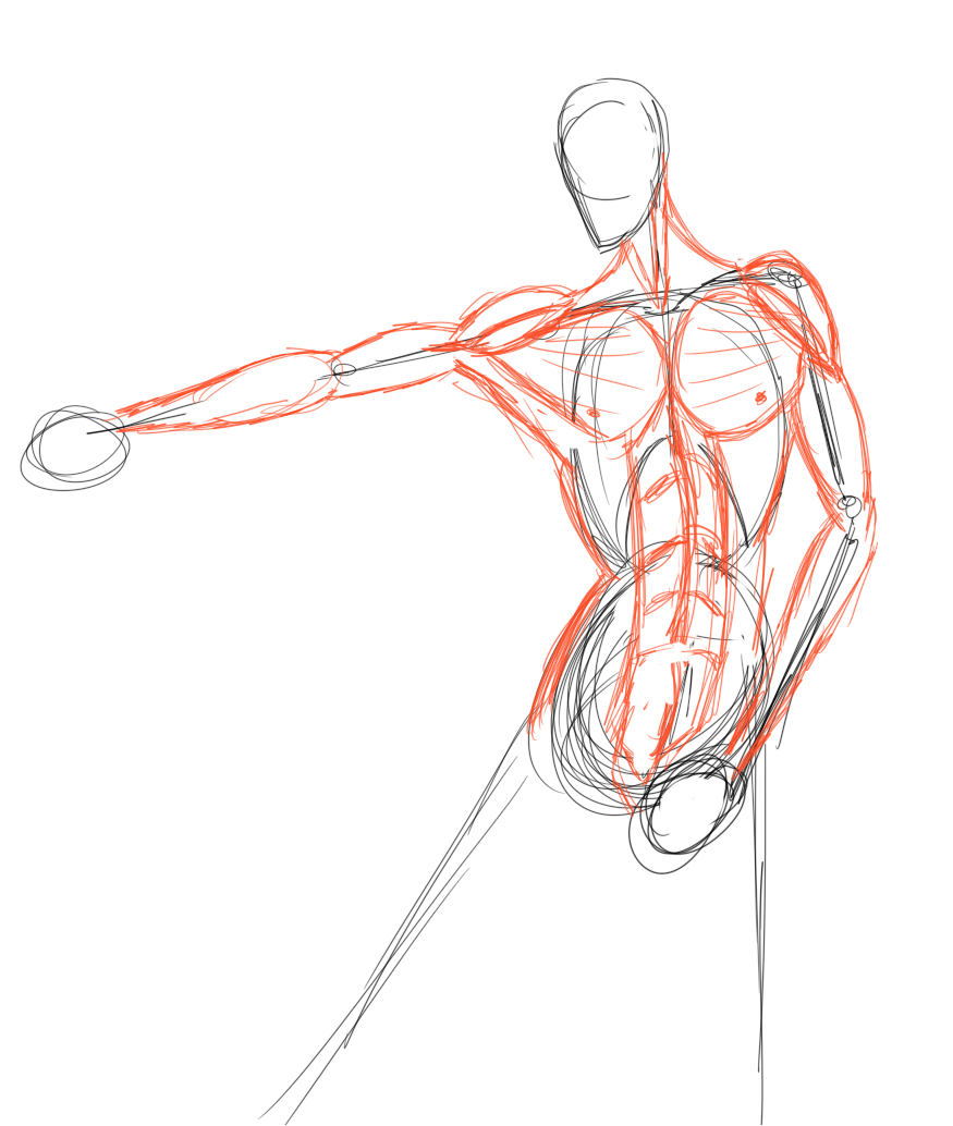> Я так понимаю, каждое из этих действий это отдельное упражнение и имеет место быть, но меня разрывает от этого. А тут целиком все зависит от твоего желания, что именно ты хочешь подтянуть. Я например сперва набрасываю два круга, для обозначения массы грудной клетки и бёдер, а потом от них пляшу. Ты сам себе ставишь правила. Хочешь рисовать динамические позы, тогда добавляй линию движения и строй все вокруг нее. Я предлагаю начать с простого и работать только с изгибами тела, даже если получатся кривые уроды. Тут важно отработать навык вести линии любой кривизны, а не глазомер развивать.