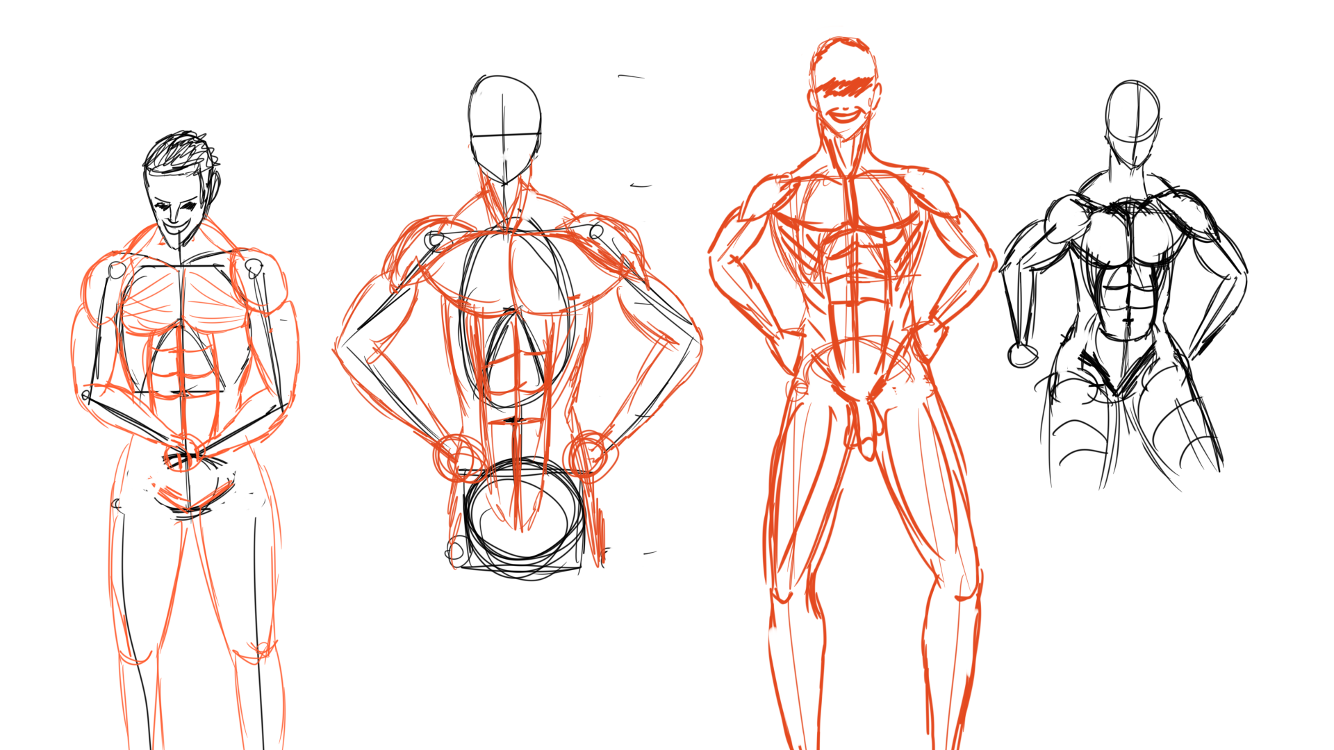 >>1219613 Ты очень плохо себе представляешь формы, которые собрался рисовать. Они все объёмные и надо бы их хорошо представлять по отдельности, а уже потом собирать в единое целое. Пропорции туловища. Лучше всего их условно разделять на 2 большие части - от лобка до талии и от талии до ключиц и плеч. Направляешь соски куда-то совсем не туда, в связи с первой причиной. Форма мышцы жопы в виде бабочки, а не в виде шара.