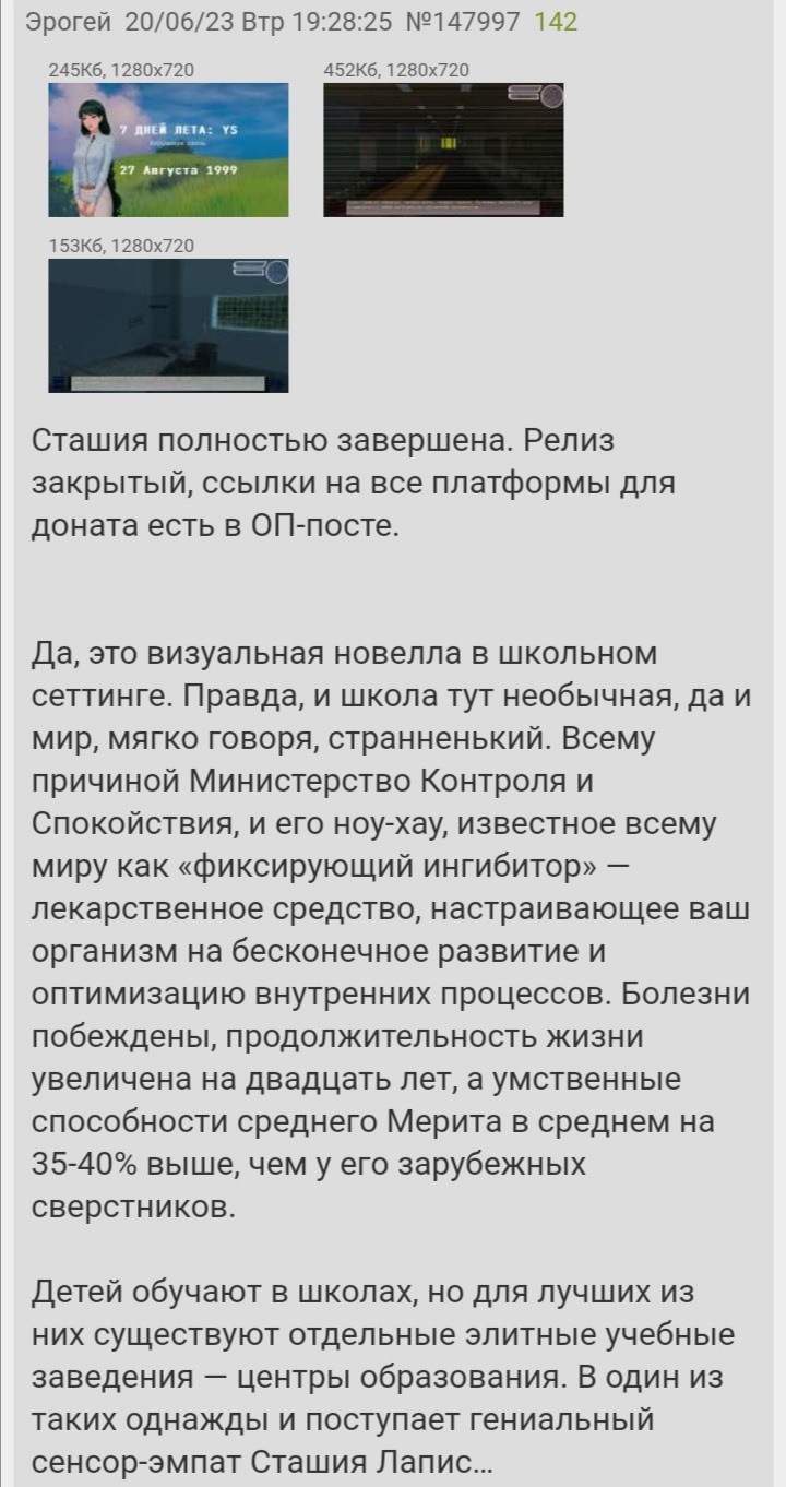 А ведь он мог бы стать полноценным разрабом новелл, как Алкиной прости боже, запилить индигого и кикстартер, может и выдал бы годноту какую-нибудь, если бы была ответственность, всяко лучше чем меритократия трехсотрублевая.