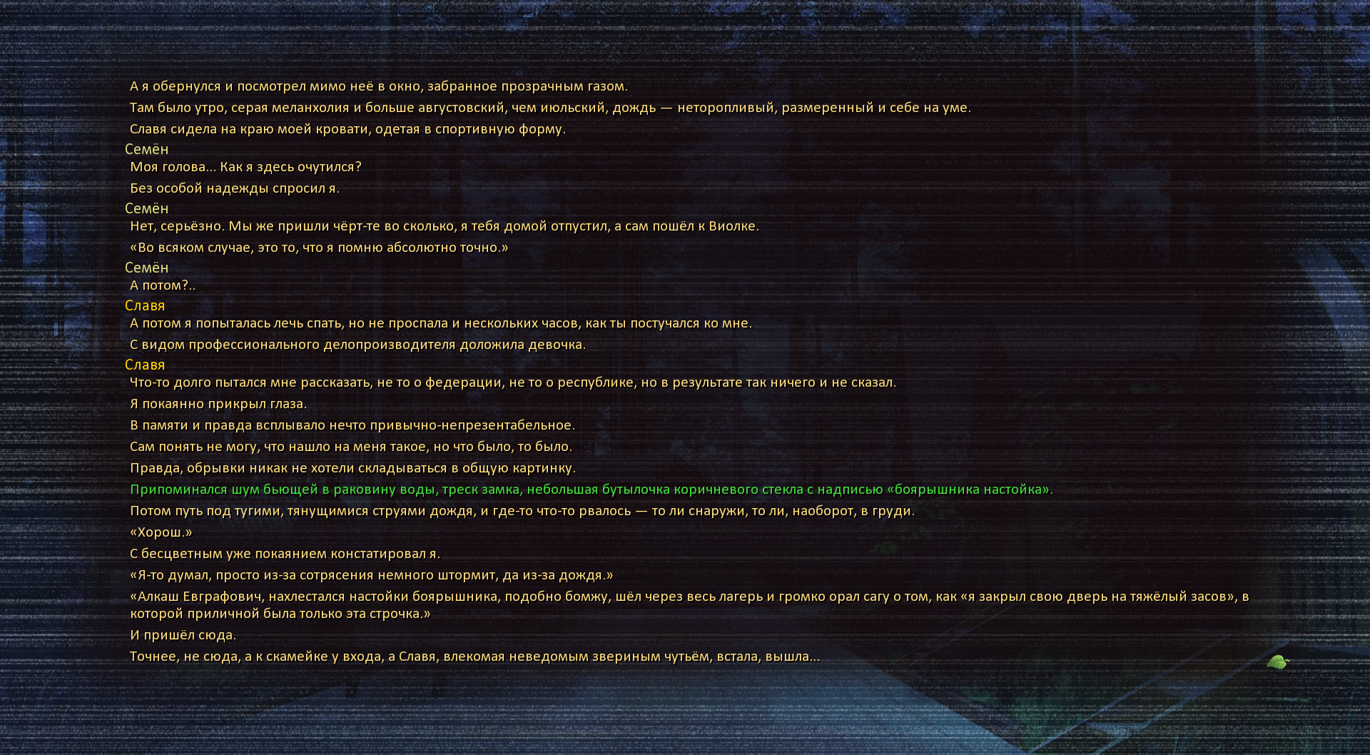 Последний раз играл в 7дл хуй знает когда, помню только только версию - 0.19/0.21. Вышел тогда помню в одном из рутов на концовку Алисы-тульпы и охуел, по башке ударило пиздец как. Сейчас вот решил перечитать если интерес не пропадет. Поясните, вот эта хуйня про боярышник - это реально чтоли, единственное что было придумано чтоб ГГ переместить из медпункта в домик Слави? Это не рофл?