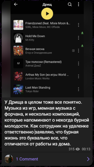 С остальным не особо согласен. Ты какой-то слишком впечатлительный по-моему. Я этим летом от и до всё пиво прошёл, кроме нового одиночки, и меня вообще нихуя не тронуло. Катюшина графомания ещё куда не шло, но то что пивопис там высирал - это вообще мрак. Дрочево на пидербрух, поцеловал с оттяжкой и прочая пивная кринжатура. Спасибо Евгену что хоть вычищает это всё.