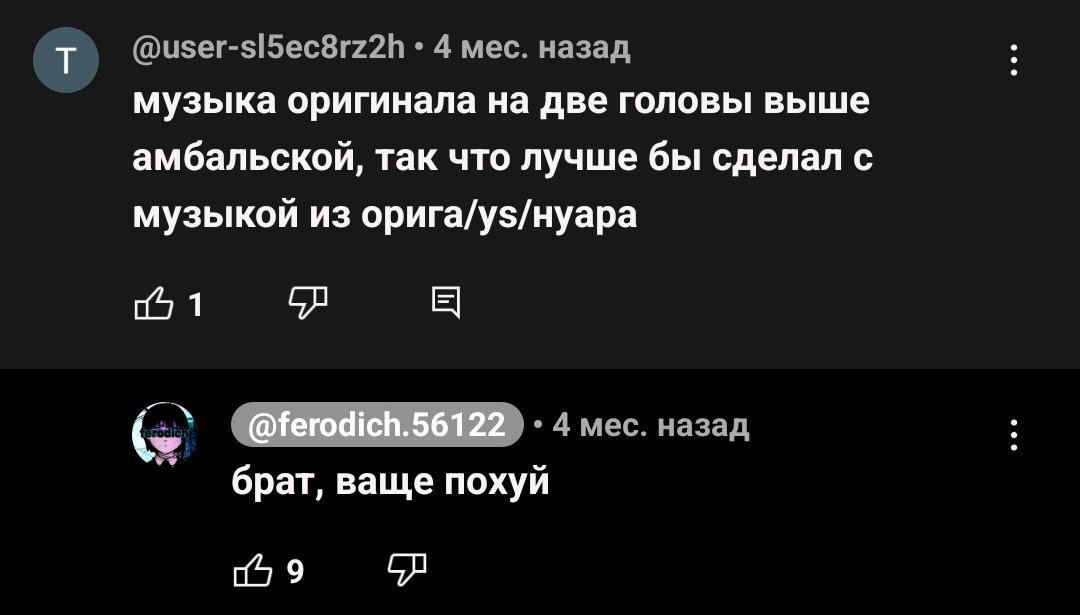>>1225179 Про коричневый рот первым заикнулся не чел с Ольгой на аве, а долбоёб с тыртейлом. Ютуб просто умело прячет комменты с оскорблениями и подобным, но их можно увидеть, если профильтровать комменты по свежим