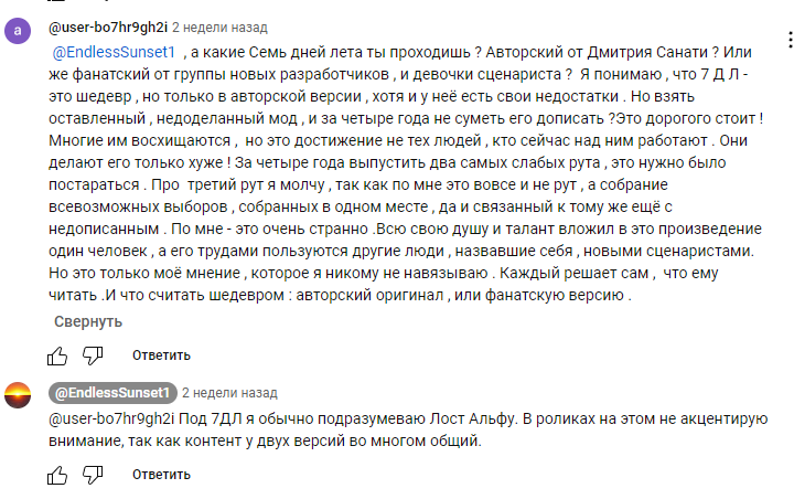Это "последнее" обновление 7дл? Или ещё какой-нибудь рут ответов на ответы будет потом? Я могу пройти мод от начала, по всем рутам, и до конца истории, а не ждать очередной обновы? Последний раз задротил 7дл ещё до пивопокалипсиса.