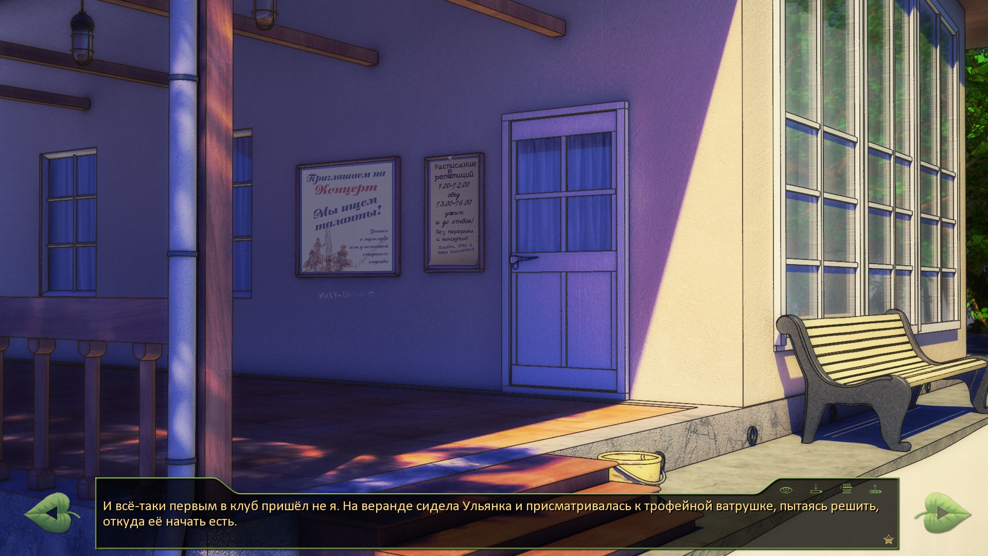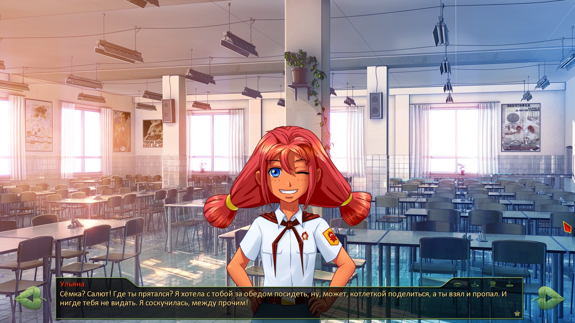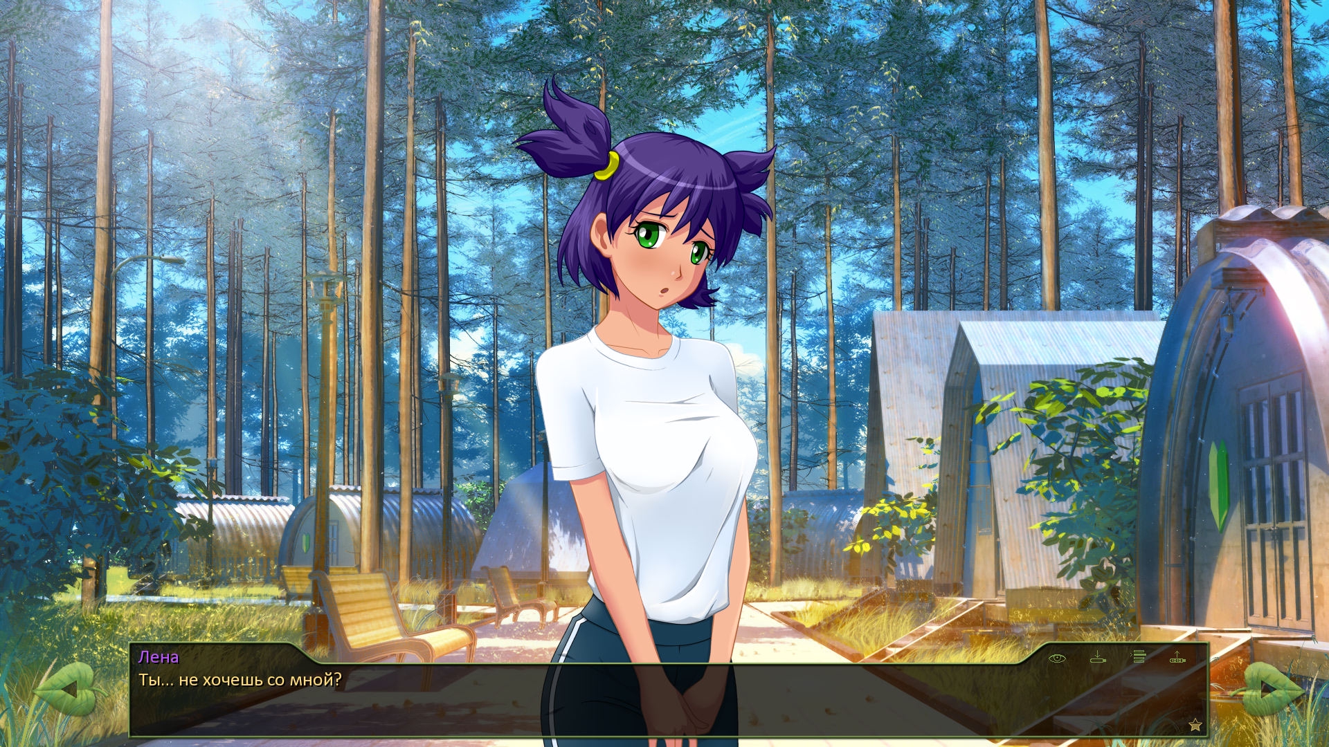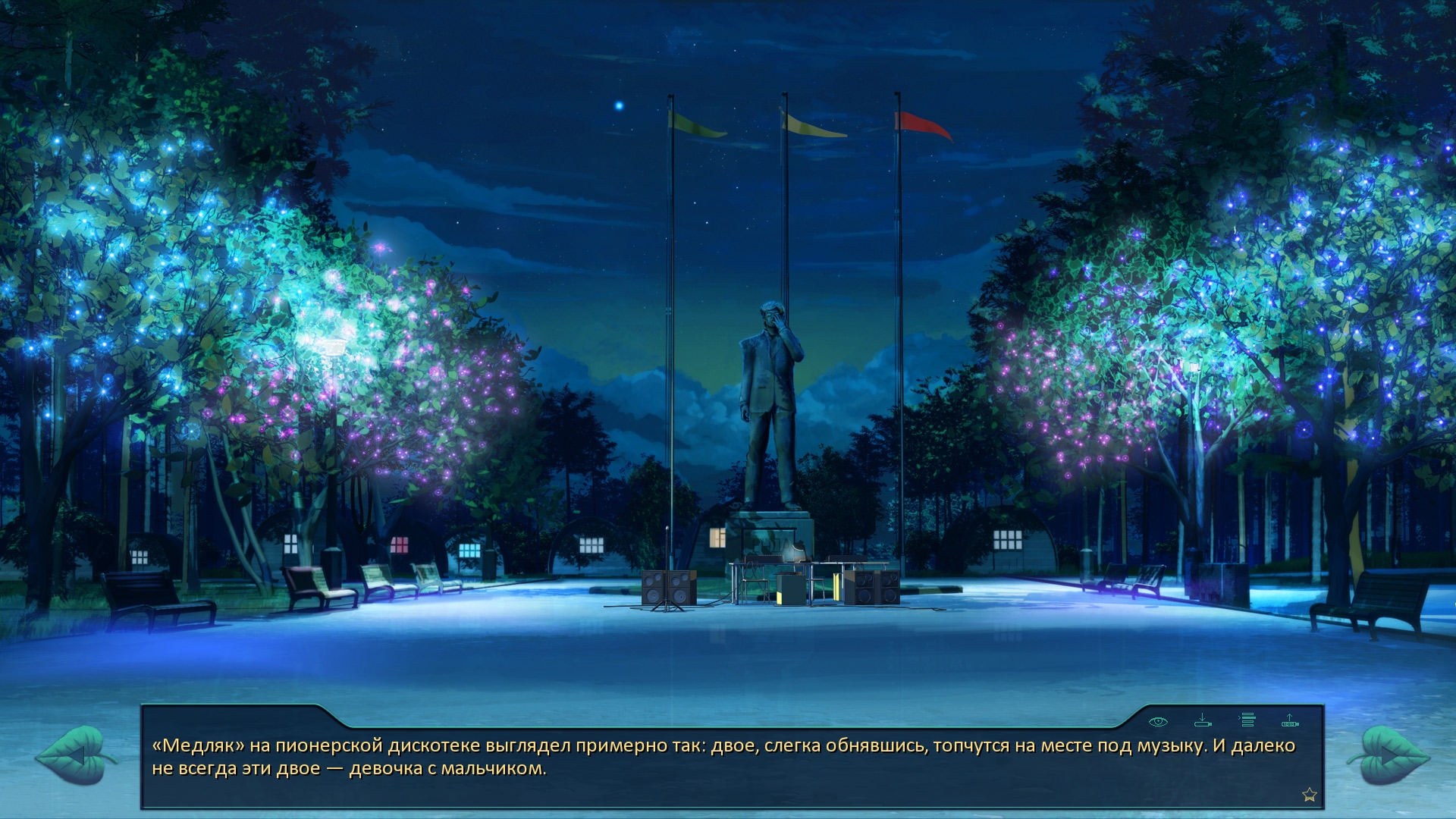 un "А ты не знаешь, куда Шурик пошёл?" un "Шёл к лесу и бормотал что-то под нос. Я его позвала, а он даже не повернулся. {w}Лунатик, что ли?" me "Был бы лунатик — в трусах гулял бы. {w}Я его тоже видел." me "Не бери в голову. Наверное, девочка у него, будут держаться за руки, смотреть на звёзды и по-пионерски целоваться в щёчку. {w}Даже завидно."