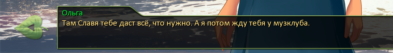 >mt "Там Славя тебе даст всё, что нужно. А я потом жду тебя у музклуба. {w}Скажешь, я просила выдать краски и кисточки А вот тут бы паузу добавить >mt "Там Славя тебе даст{w} всё, что нужно. А я потом жду тебя у музклуба. {w}Скажешь, я просила выдать краски и кисточки