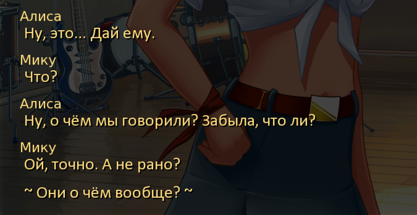 Так, что я уже успел узнать, побывав котом до завтрака : ✔ бкрр-версия Семёна очевидно или мутит с Мику, или как минимум по ней пиздострадает ✔ Шурик трахался с Виолой ✔ Алиса тусит в музыкальном клубе и чуть ли не тексты песен там сочиняет