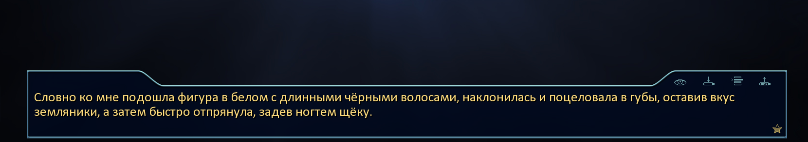 >>1240206 >"Словно ко мне подошла фигура в белом с длинными чёрными волосами, наклонилась и поцеловала в губы, оставив вкус земляники, а затем быстро отпрянула, задев ногтем щёку." >"На губах ощущался посторонний привкус. Земляника."