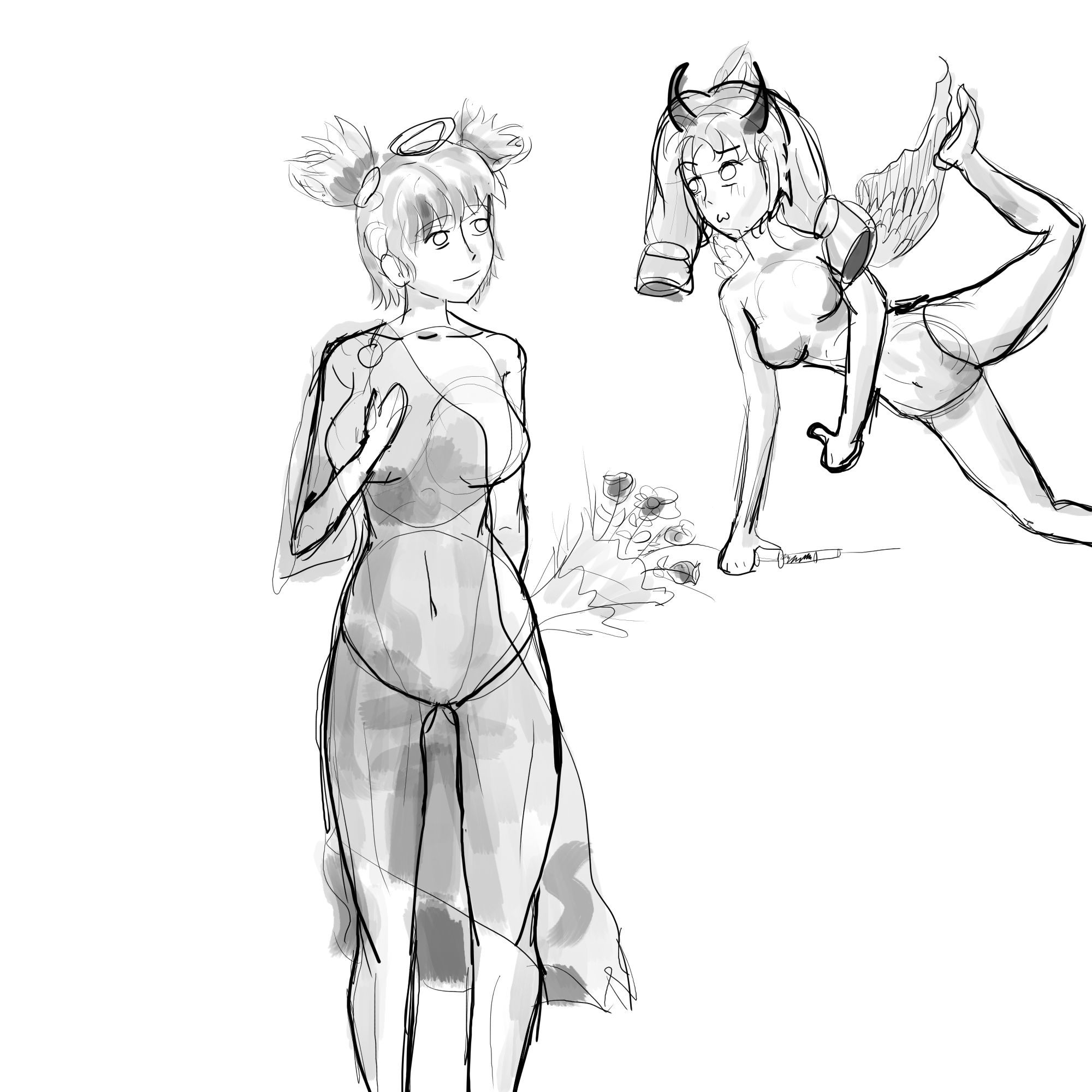 >>1225881 Да ты очень прав, косяк. Пока вытягивал пропорции, прокакал всю идеи первоначальной позы, но получилось то что получилось - не падают и уже хорошо.