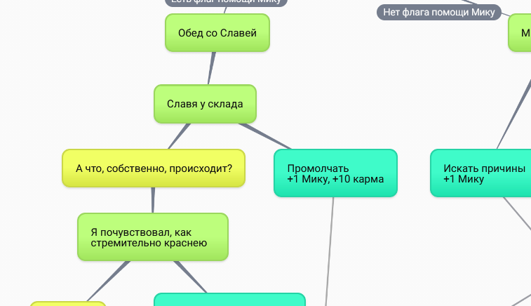 >>1235499 Итераций много было, я раза три или четыре с нуля все переписывал. Ну, расскажу за последнюю, хоть и слабо её помню, ибо практически всё писалось в этиловом угаре. на самом деле ужасные времена были, до сих пор с содроганием вспоминаю. Синька чмо, не пейте посоны Первый балл ЛП можно было получить, зайдя после карточного турнира в медпункт с куском торта. А то сидит одна, скучает. Надо сказать, очень трогательный ивент вышел, разговор по душам хорошо получился. В общем, после этого Семён влюблялся в Виолу до розовых соплей и вплоть до 6-го дня неумело катил шары к Виоле и пытался добиться взаимности. Безуспешно. Как ему казалось, безуспешно. Все же Виола всегда профессиональное ставила выше каких-то дурацких любовных переживаний. Затем, как в ванилле, пропадал Шурик, из этого вытекал поход в старый лагерь и шахты с Виолой, где в цепочке экстремальных ситуаций проходила проверка Семёна на мужественность и умение отличать объективную реальность от субъективных иллюзий. Благо простор для смалодушничать был ох какой. Плюс как один из конфликтов и завязки для драмы выбор для Виолы между профессиональным и личным. Помнится, так и не придумал, что делать с Ольгой Дмитриевной и её личной драмой с Мажором, поэтому сцены с ней планировал уже дописать в конце и втиснуть в повествование задним числом. Воооооот...