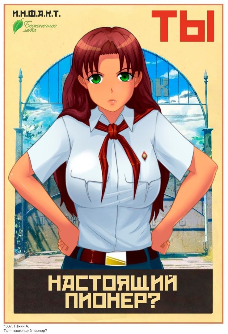 Продолжаем обсуждать вожатую. Предыдущий тред >>493235 (OP) Так как прошлый тред висит с 2015 года, то маленькая справка. По диздоку ей 23 года, Семену показалось, что ей 25. Единственная, кто не смущается при виде голого Семена. В процессе написания трижды менялся цвет глаз: с красного на карий, а потом на зеленый. Прототип ОД - Мод-тян с ычaнa, но под кроватью у неё банхаммер - атрибут Банхаммер-тян а это два разных маскота Значок на груди у Ольги, предположительно, Знак выпускника высшей школы милиции. Вожатая Ольга из Metro:Exodus - отсылка на ОД. Погнали.